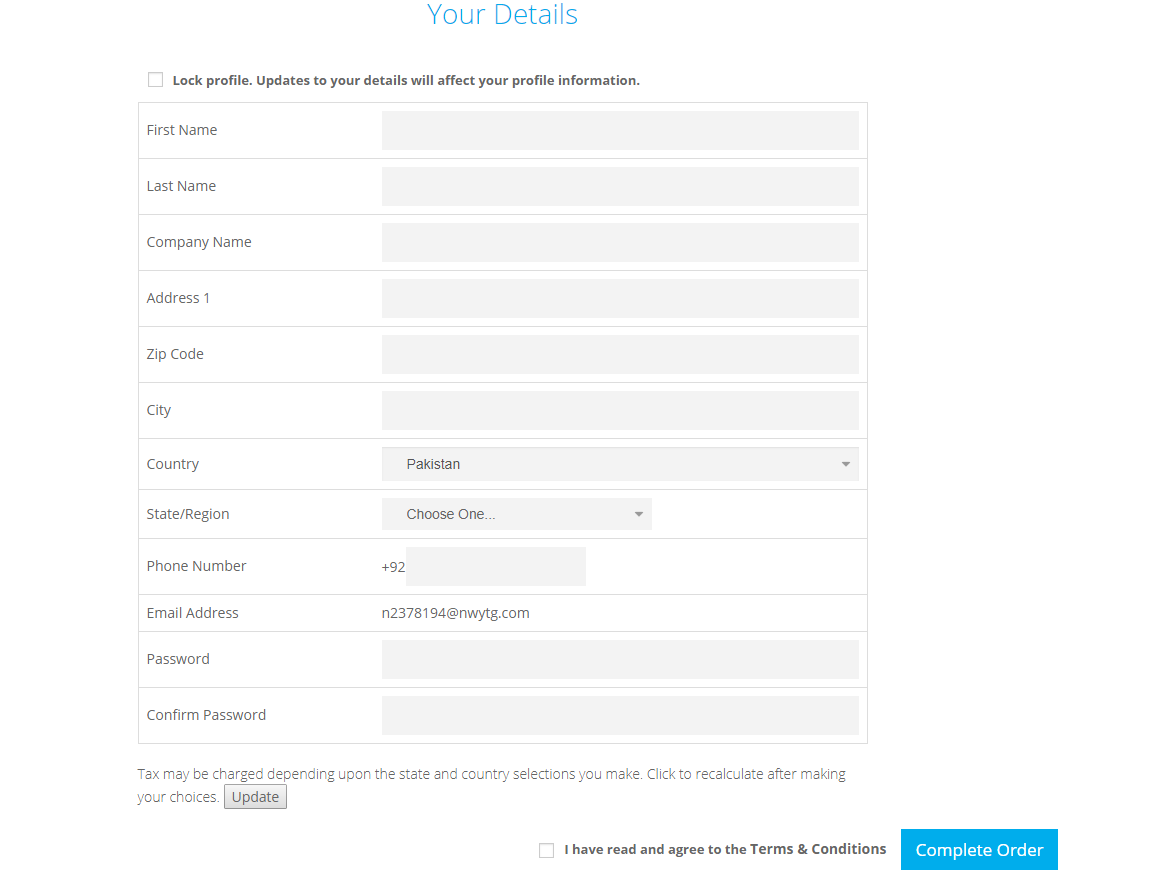 After the verification of your email, you’ll be redirected to another page. Here you need to fill in your details. You can input fake details if you feel uncomfortable using your genuine details. Fill in the details and then proceed by clicking on "Complete Order".
