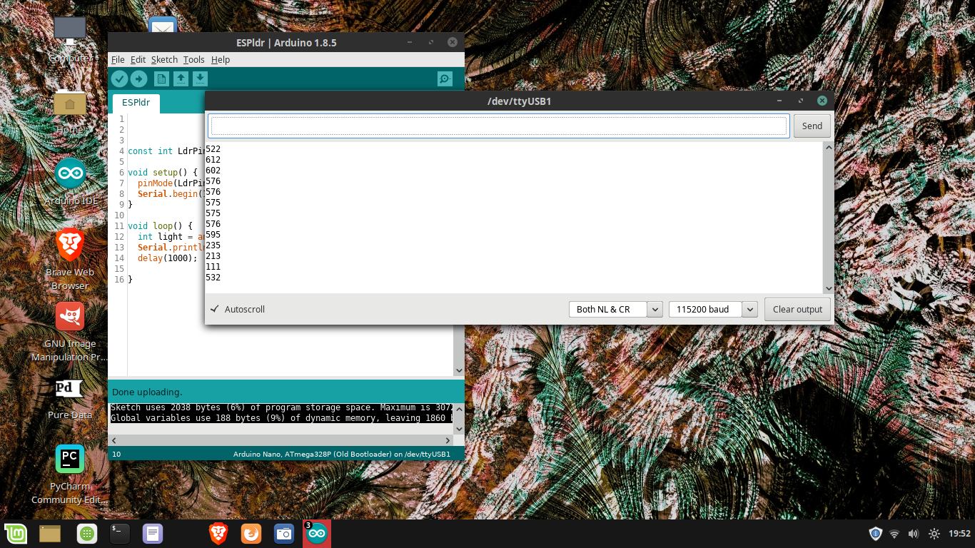 The numbers on the left are the readings of the LDR. If you get the photo resistor closer to a light source the number should go up to a max of 1024, while taking away from the light it goes down o a minimum of 0.