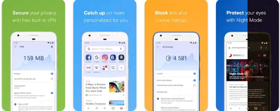 Opera is the only browser to have the requisites of a modern browser- vpn,do not track, and effective adblocker,save as PDF,reader mode,dark mode, download manager and a lot more. I have a few suggestions also - add more features to the download manager like an option to add new download , video grabber ,multithreaded downloding etc. Also add option to open links from other apps in the background instead of direclty openi6the browser as soon as link is opened. Good work opera team.