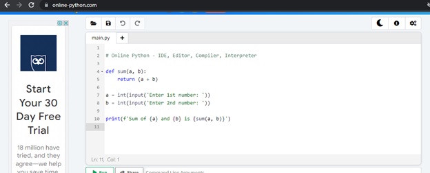 What we are going to use for this leaning class is an online platform which easily accessible online and generate the results of our program in real time. This is www.online-python.com.