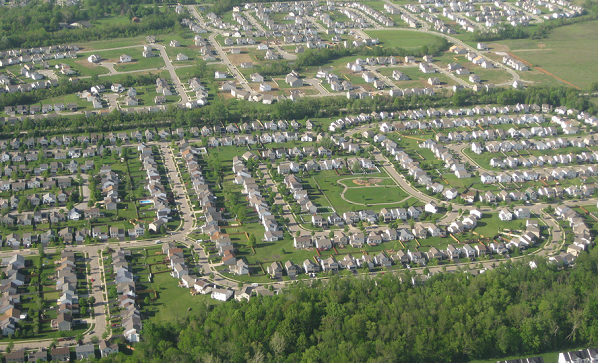 The current urban planning model for modern cities is to make them large, to give as many people as possible a single unit dwelling on a largish plot of land and to zone different economic activities in different areas of the city.