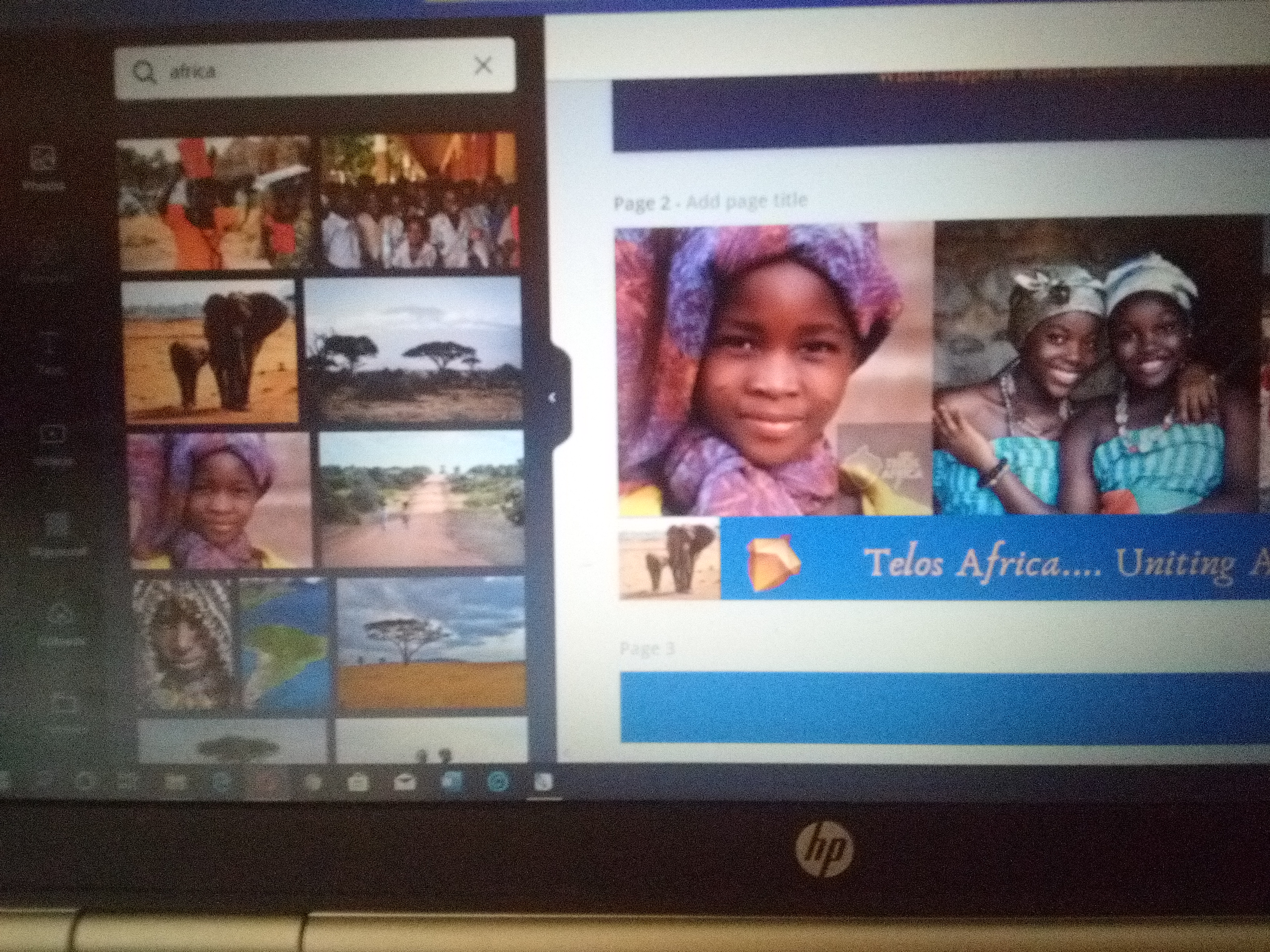 The second page consist of 5 images I got from searching for the keyword; Africa. Then I arranged them to serve as background and finally added some text.