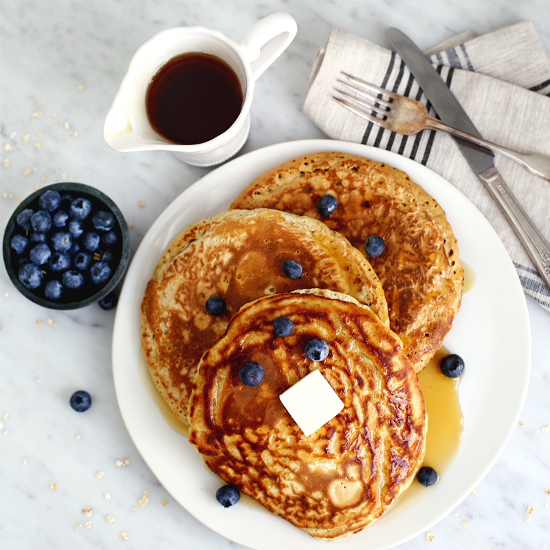 Receta de panqueques con arándanos.