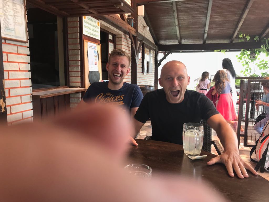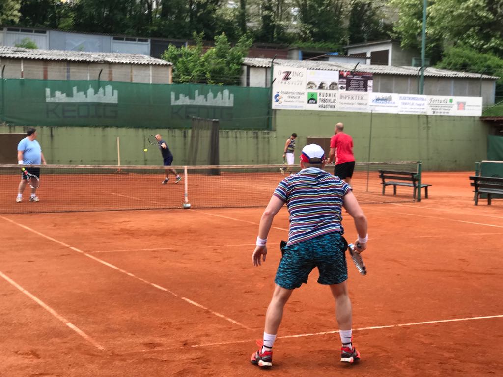 It was a great match. He is 21 years old ex competitor. I won first set easilly than real fight began. In 3rd set he broke for 2:1 and then i broke him twice to get to 4/2 then he broke me and lead 4/5 but then again i broke him. I was so tired i was realy thinking why i should continue since we played more than 2.5h allready. Then he suggested if we had enough. I was so pleased. That way we won both!