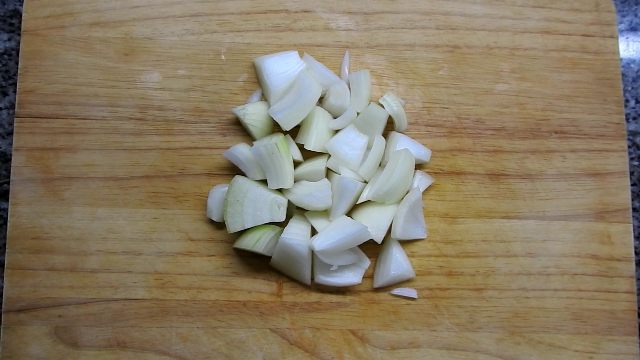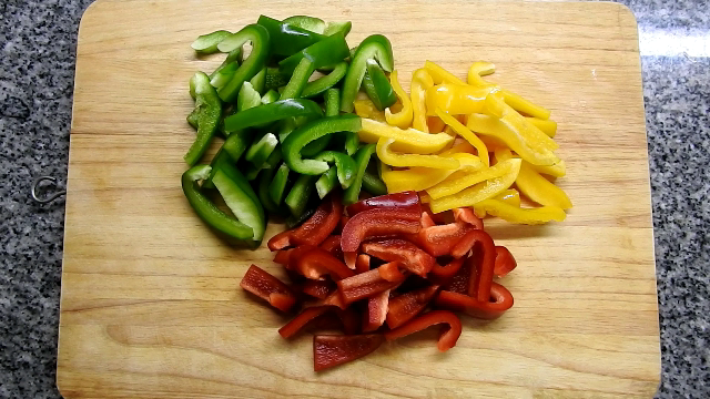 1 Cut sweet peppers, onions, green onions, tears the mushrooms and chopped garlic.