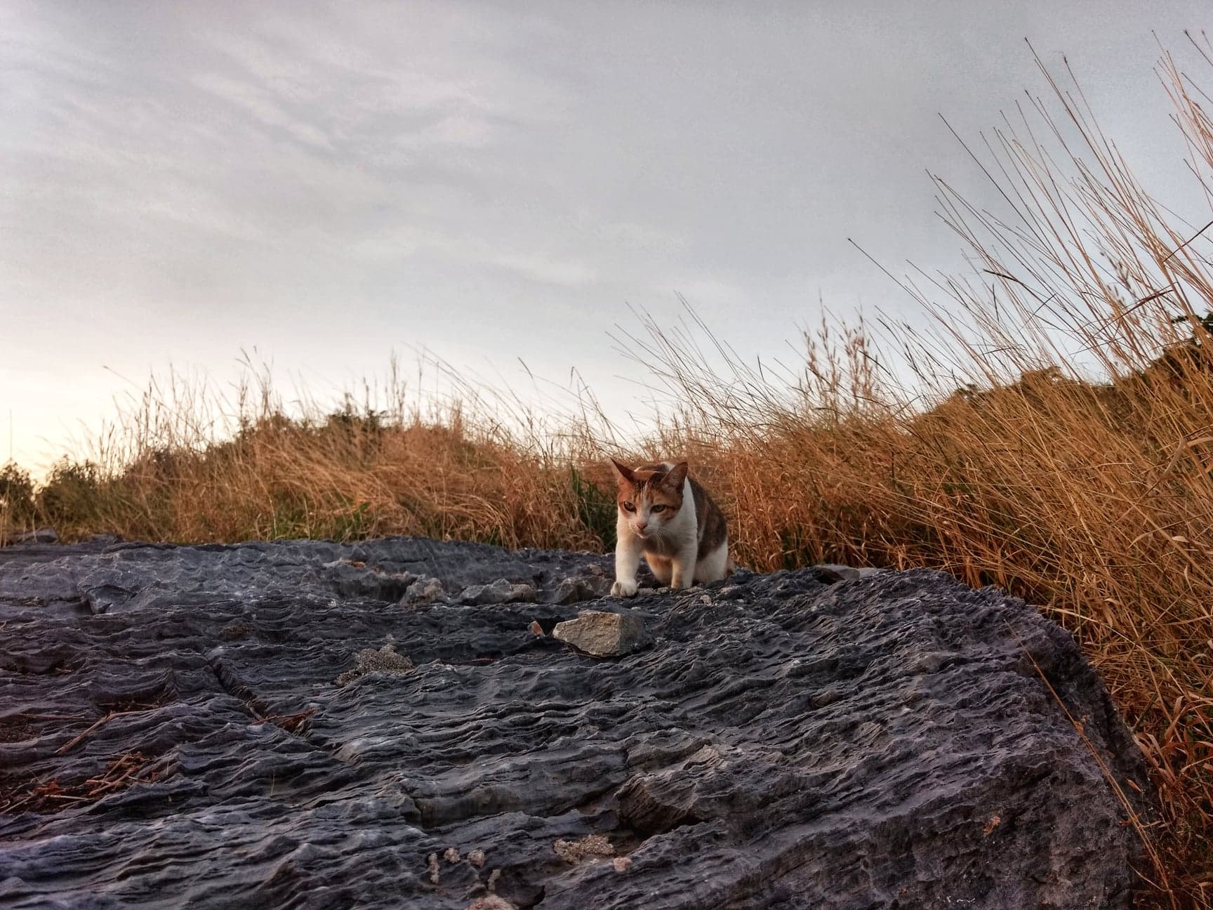 ช่วงที่ผมไปเที่ยวบนเกาะสีชัง ในยามเย็นผมกำลังจะเดินไปชมพระอาทิตย์ตกดินที่สะพานอัษฎางค์ ผมเห็นว่ามีแมวน้อยตัวกำลังเดินออกมาจากพงหญ้าเพื่อมานั่งชมท้องทะเลอันกว้างใหญ่และดวงอาทิตย์ที่กำลังลาลับขอบฟ้าไปด้วยกัน ผมจึงมีโอกาสเก็บรูปนี้มา ซึ่งหลังจากผมเห็นภาพแล้วผมไม่ได้คิดว่ามันเป็นแมวเลย แวบแรกที่ผมเห็นผมนึกถึงเสือกำลังเดินออกมาจากราวป่ามากกว่า