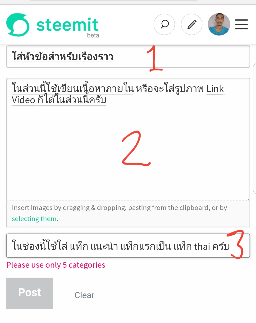 5 ขอเพิ่มเติมในส่วนของแท็กนิดนึงนะครับว่า ให้เพื่อนๆใส่ได้เฉพาะภาษาอังกฤษเท่านั้น และก็เป็นตัวพิมพ์เล็กล้วนๆนะครับ ในแต่ละคำเว้นวรรค 1 ครั้ง และก็ใส่ได้ไม่เกิน 5 แท็กนะครับ