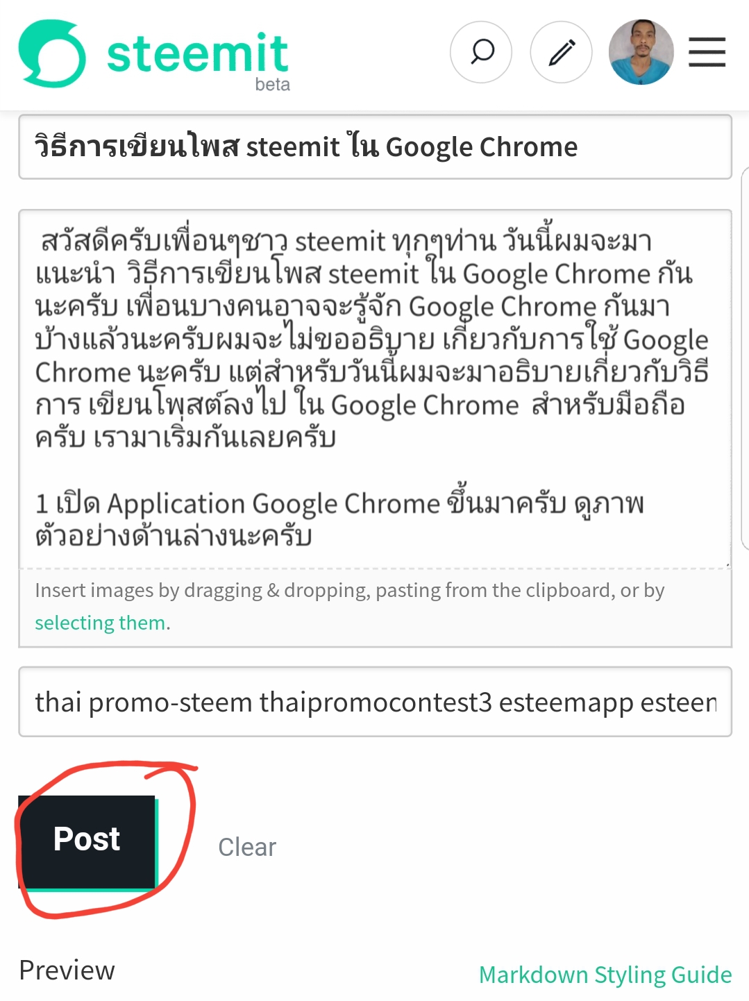 วิธีการเขียนโพส steemit ใน Google Chrome