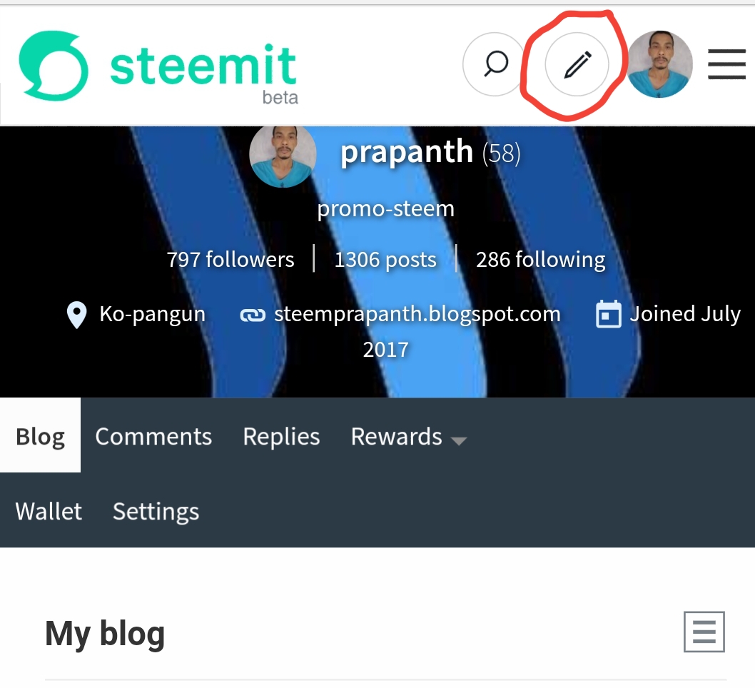 การนำรูปขึ้นโปรไฟล์ steemit เว็บไซต์มือถือ P.2