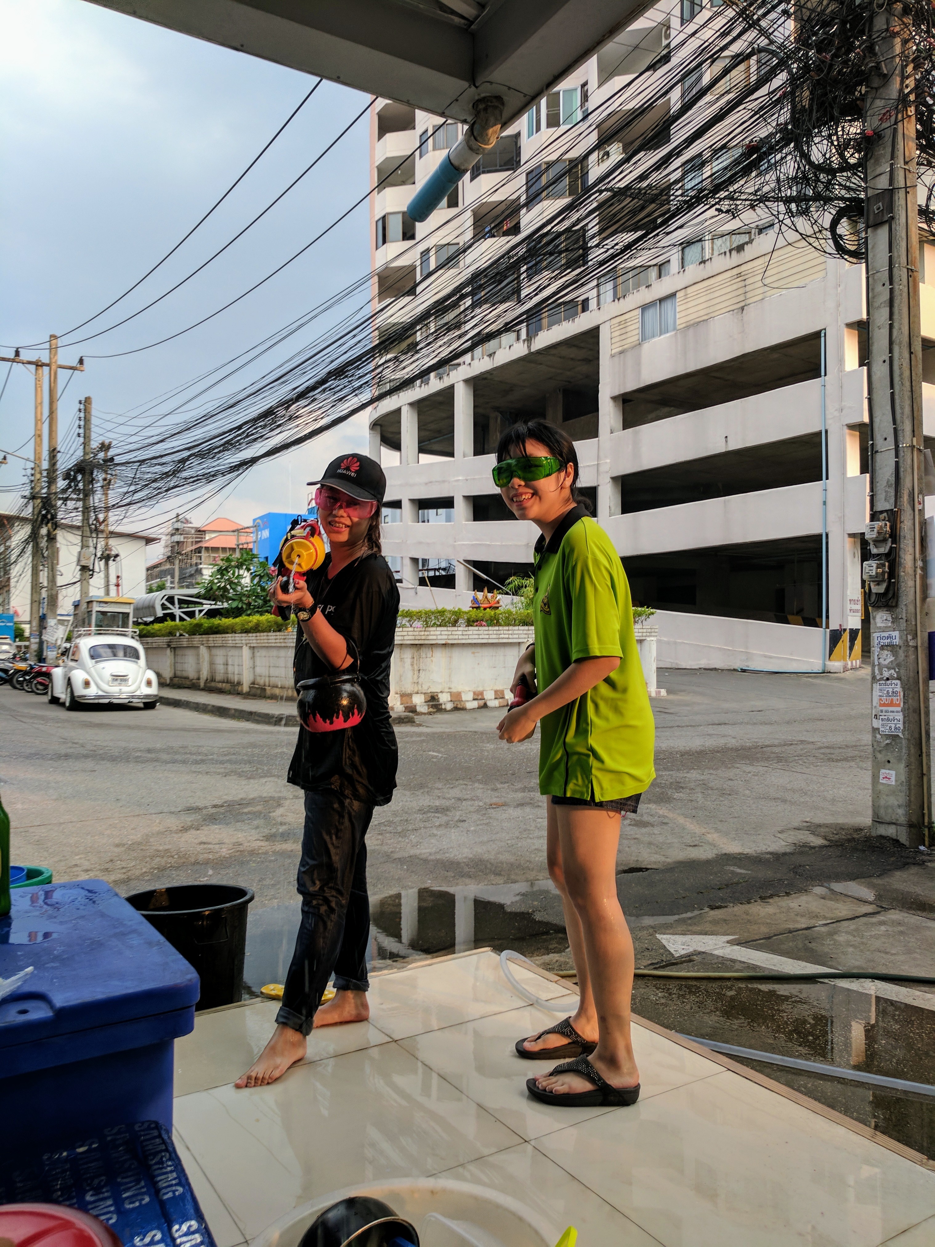 These 2 are having fun splashing water on me during Songkhran 2017 in Chiangmai aka the 4 days of water battle´s (the 2 girls btw are the daughter´s of the appartment building manager) :