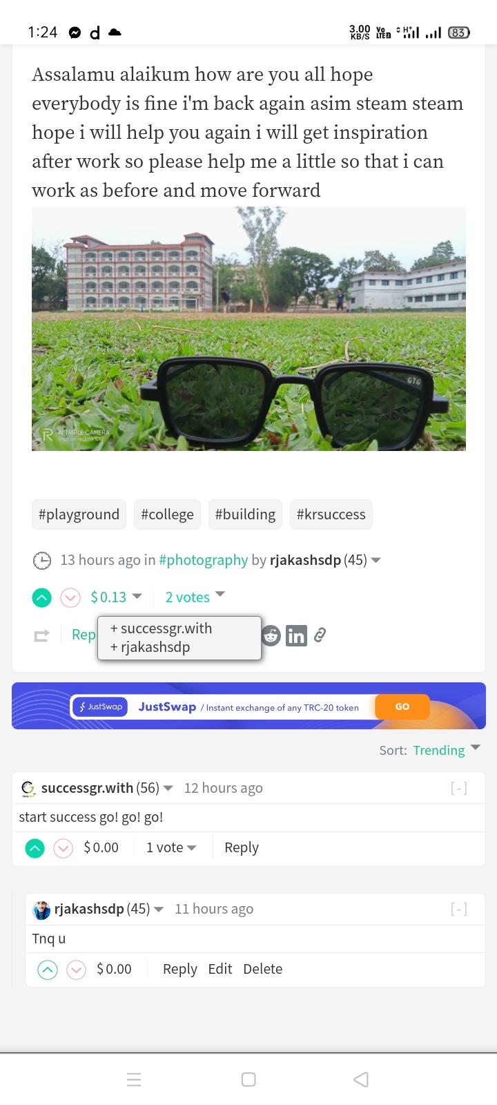 Thank You so much @successgr.withrjakashsdp (47)in #thank • 5 years ago Assalamu Alaikum, I will be on Steam again tomorrow. After a long time, one brother on Steam, thank you very much for standing by my side. I am inspired to work for you, so thank you very much, brother #you #help #me #and #support