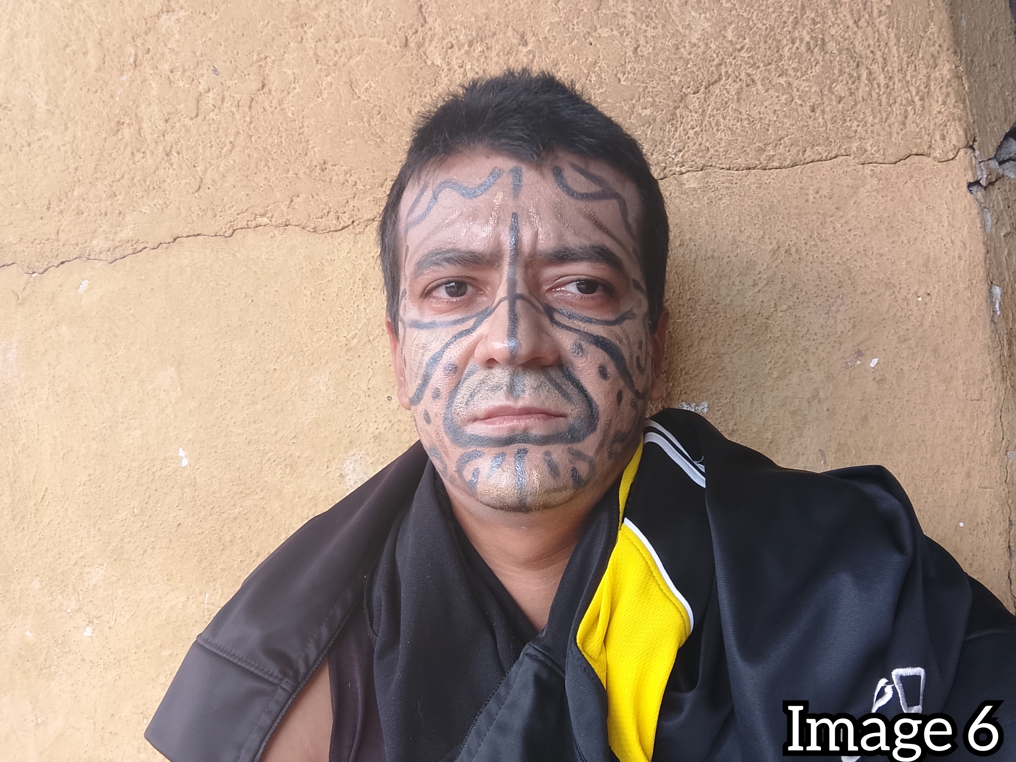 De igual forma pueden apreciar algunos detalles de la pintura en una fotografía de perfil. La pintura de guerrero celta tiene cierto parecido (aunque con sus diferencias) con el maquillaje de guerrero nórdico o vikingo.