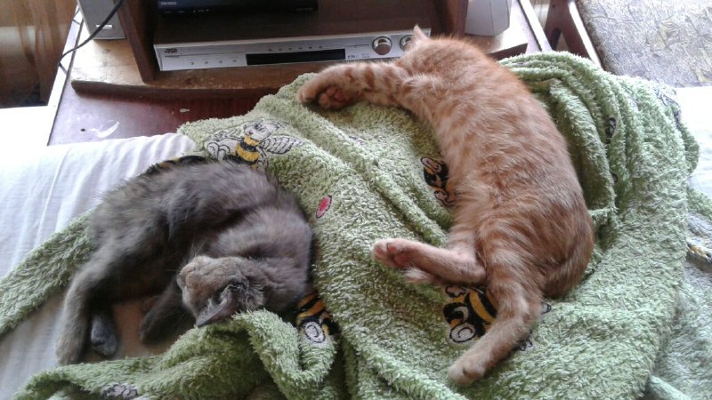 🔥 Кошек по дому снова стало больше то-ли на две, то-ли на четыре штуки. Обычно вот так вот лежат и кайфуют на массажном столе мамы) Днём отсыпаются, а ночью бегают по дому и шумят, маленькие чертяги)