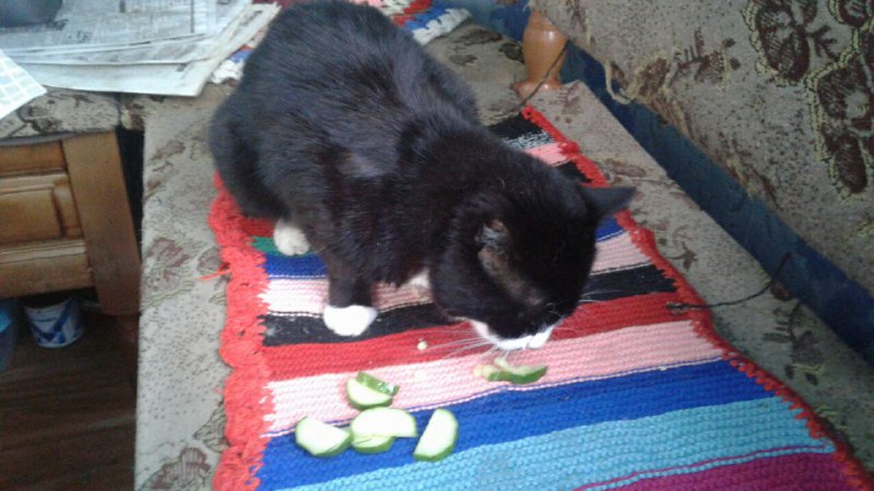 🔥Когда салат кушаю или мама начинает нарезать огурцы, то сразу прибегает кот по кличке Масаня, коротко именуем его Мося и начинает их просить себе, подтверждение тому его фотка: