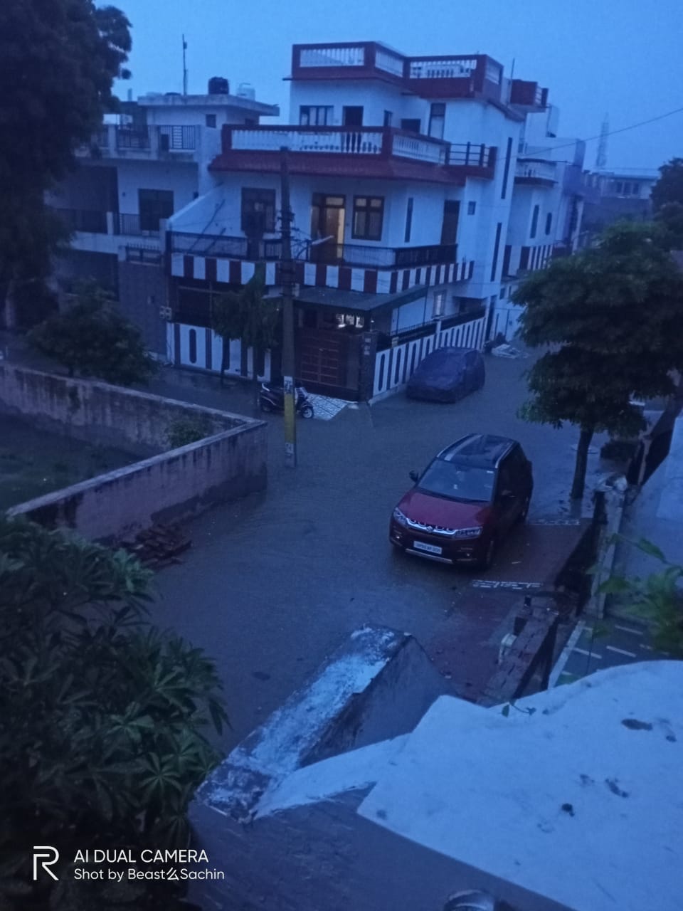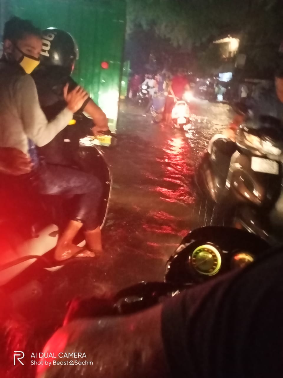 Then some rain was gradually decreased with the time. Then we went to home. On the way I clicked picture of the roads where the water came down to its knees.