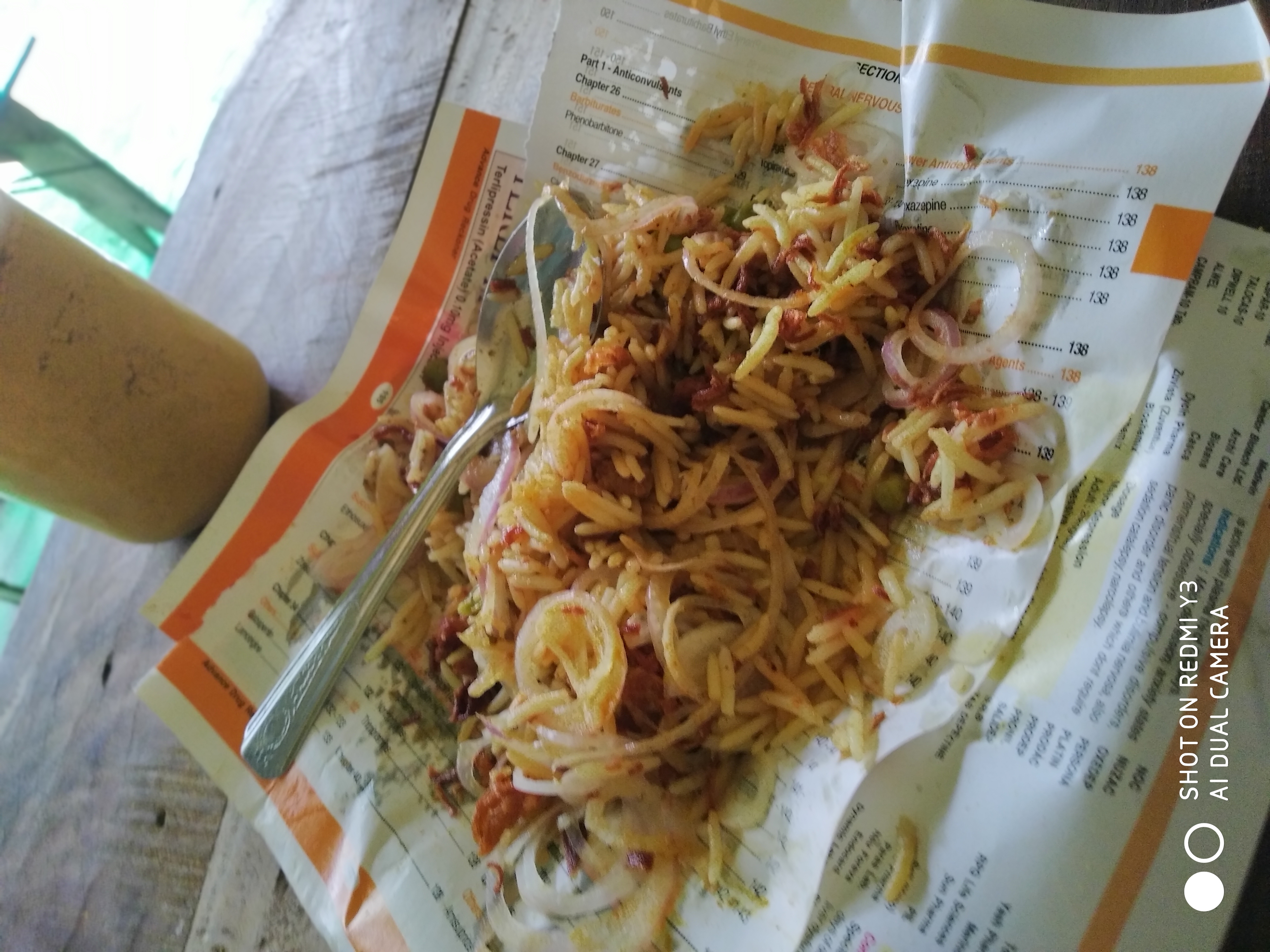 After coaching, I came home and took bath, and then I ate my breakfast. Then I took online classes of school. Also I missed my maths class because one of my friend came home and forced me to went with biryani shop. So then we went biryani shop and ate biryani.