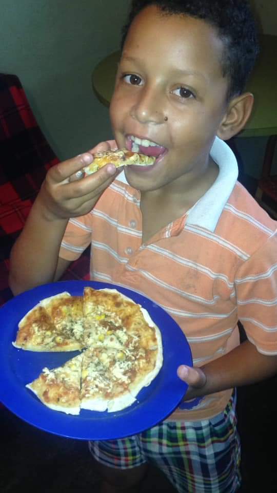 Aqui mi sobrino Maximiliano mejias probando de primero la pizza recuerden que los niños no