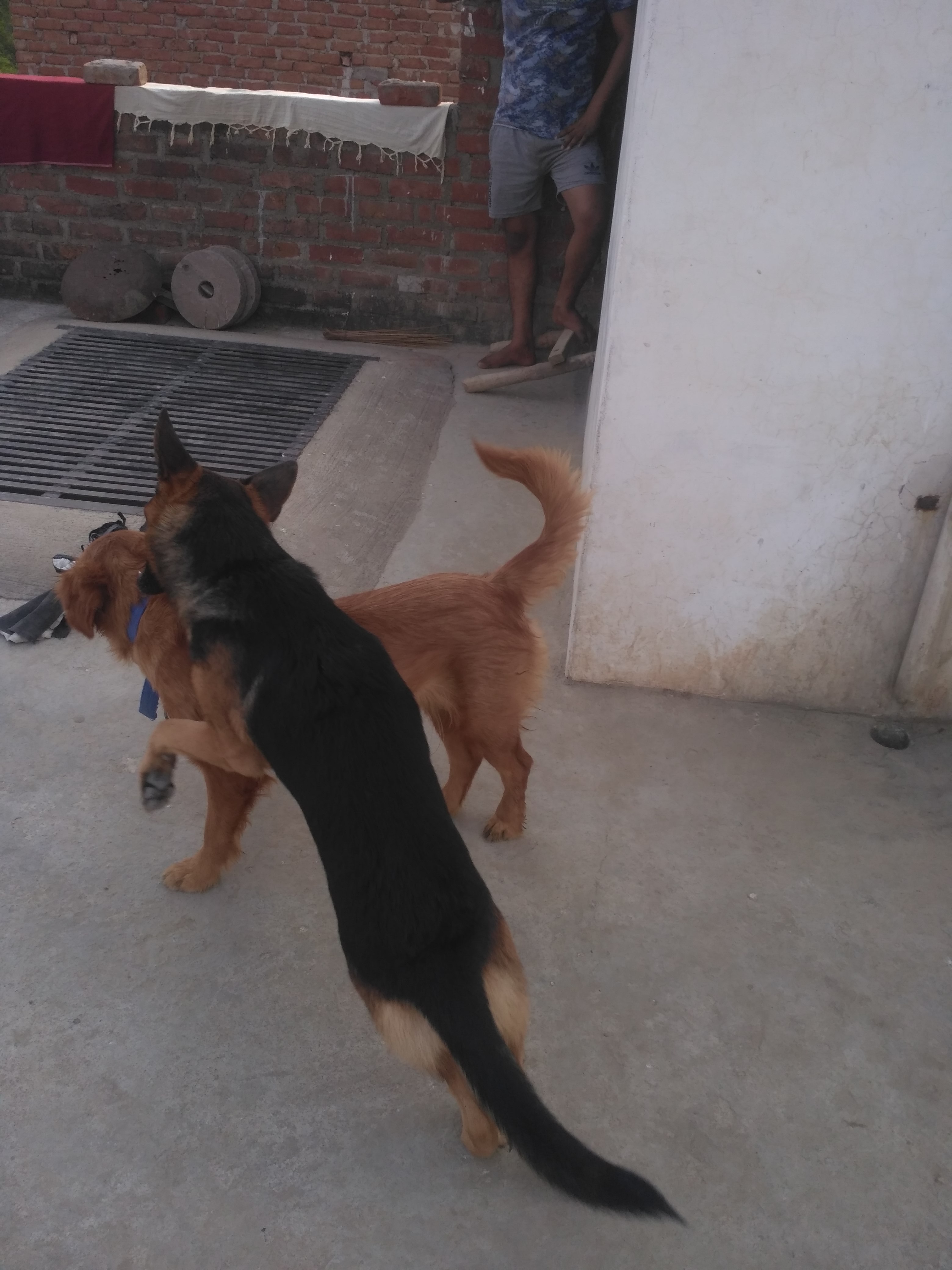 After that went to on terrace with my friend and his and my dog the both dogs were play together .One is German shefferd and another is Golden Retriever both are amazing dogs .
