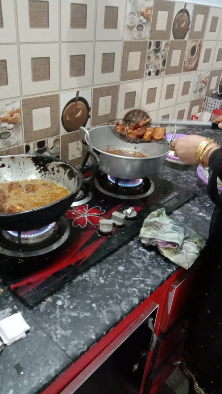 جیسا کہ اپ تصویر میں بھی دیکھ سکتے ہیں ہم اپنے کزن سے باتیں کرتے رہے اور وہ مچھی بناتے
