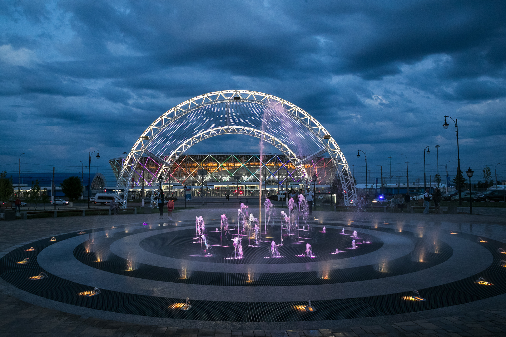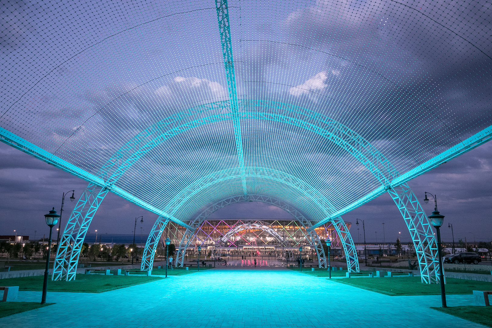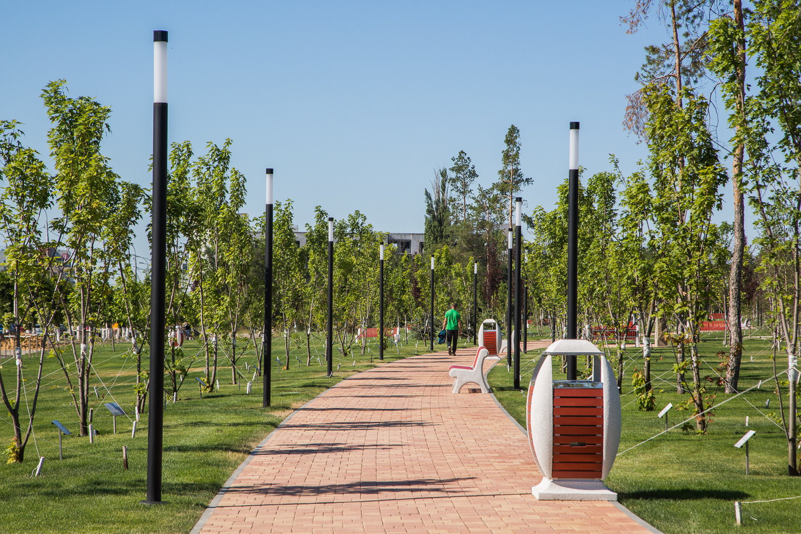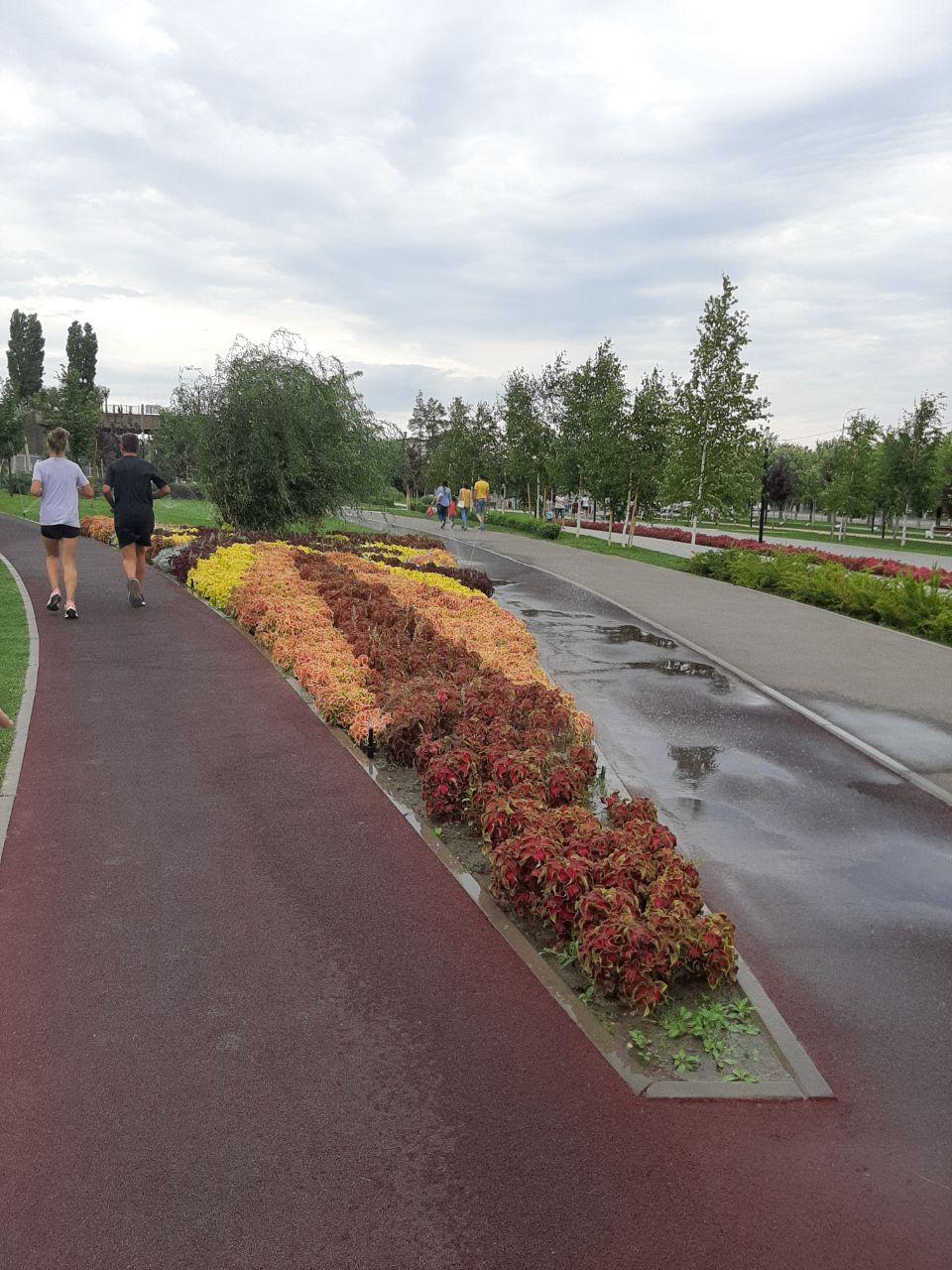 This park includes sports and recreation areas, bike paths, a platform for mass cultural events. The center of attraction, of course, has become an alley with a light and music fountain and LED arches — together they make up a single composition.