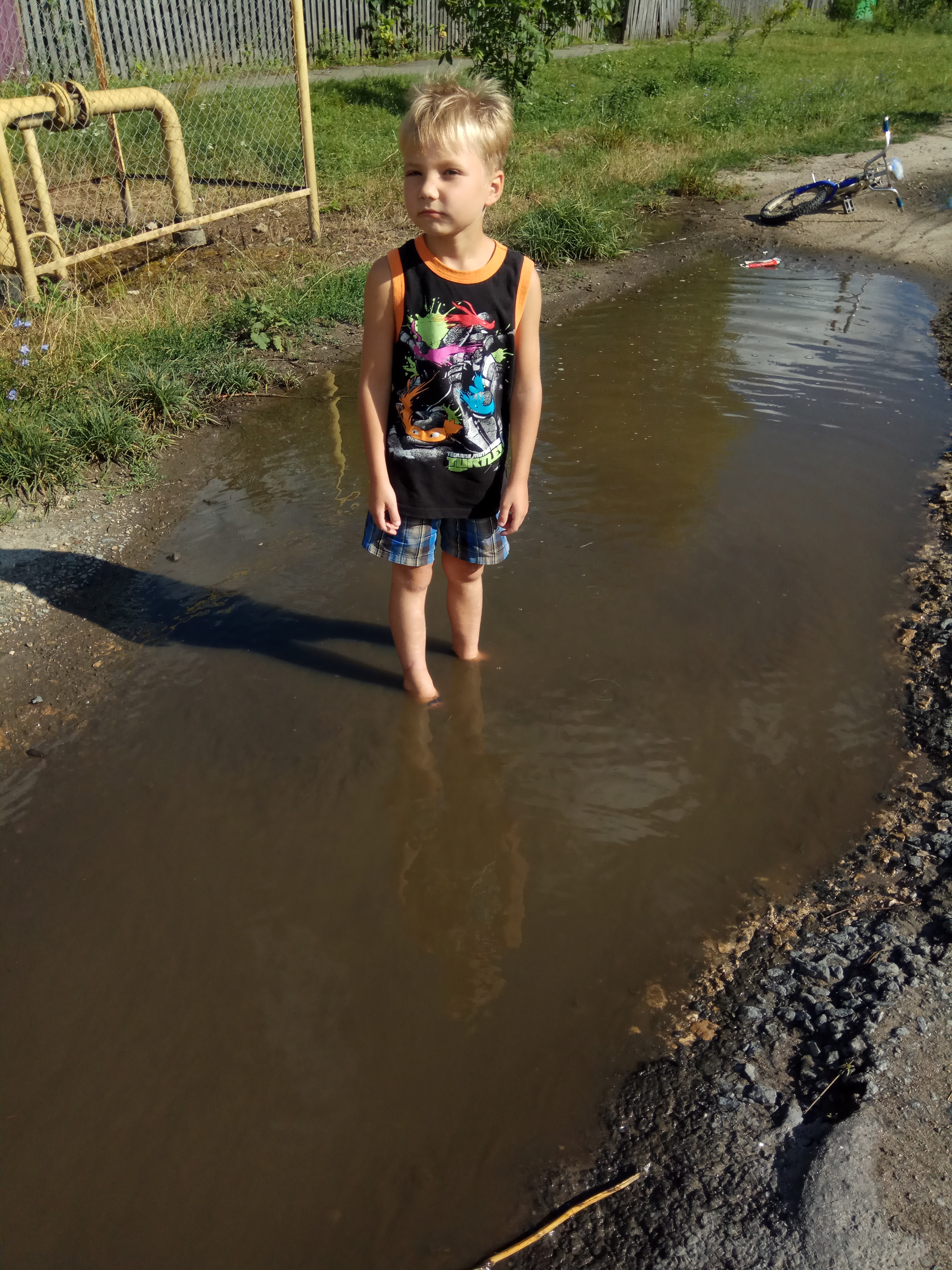 Дети успели побегать по лужам, помню в детстве ходила по лужам, в них всегда была теплая вода.