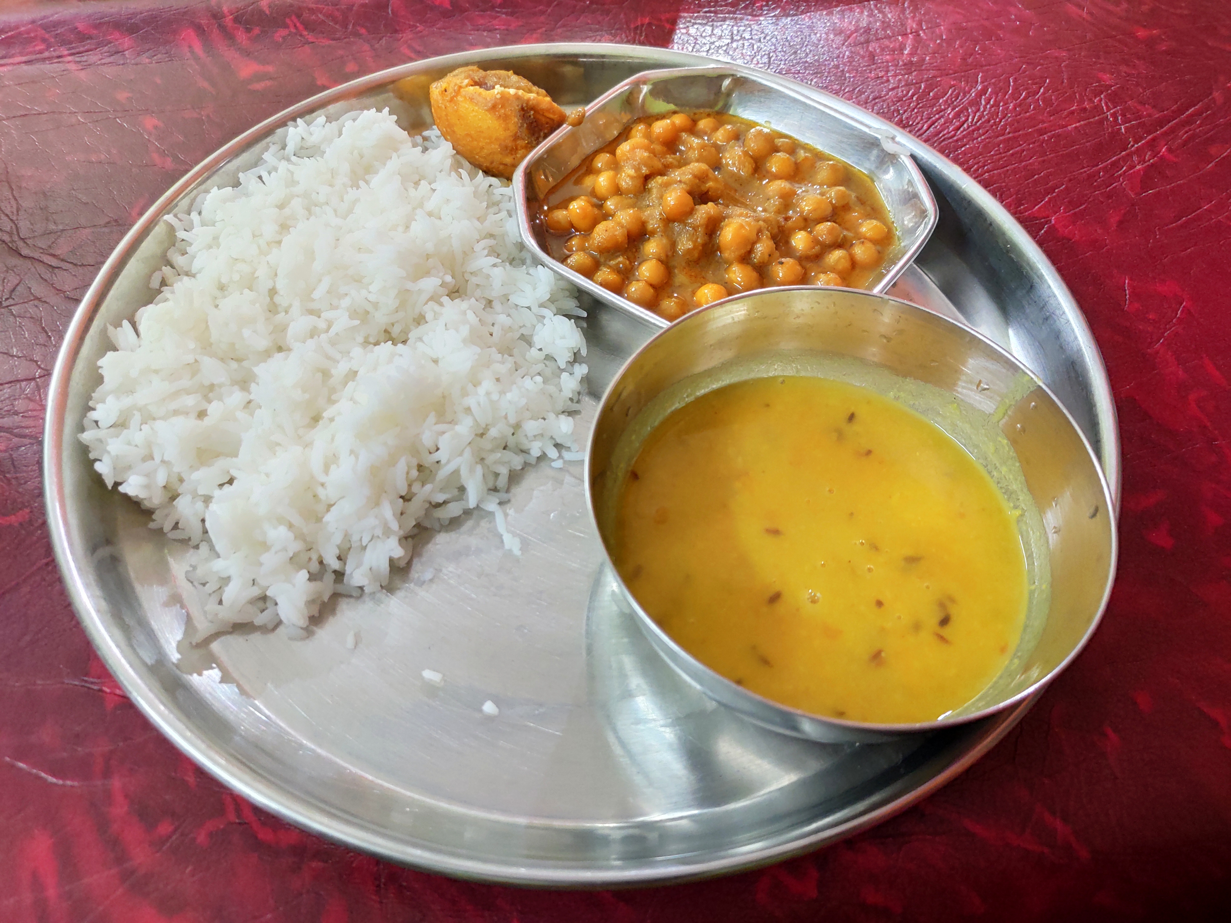 My mother invited all of us to eat. My mother made rice, lentils and peas vegetable in lunch today.