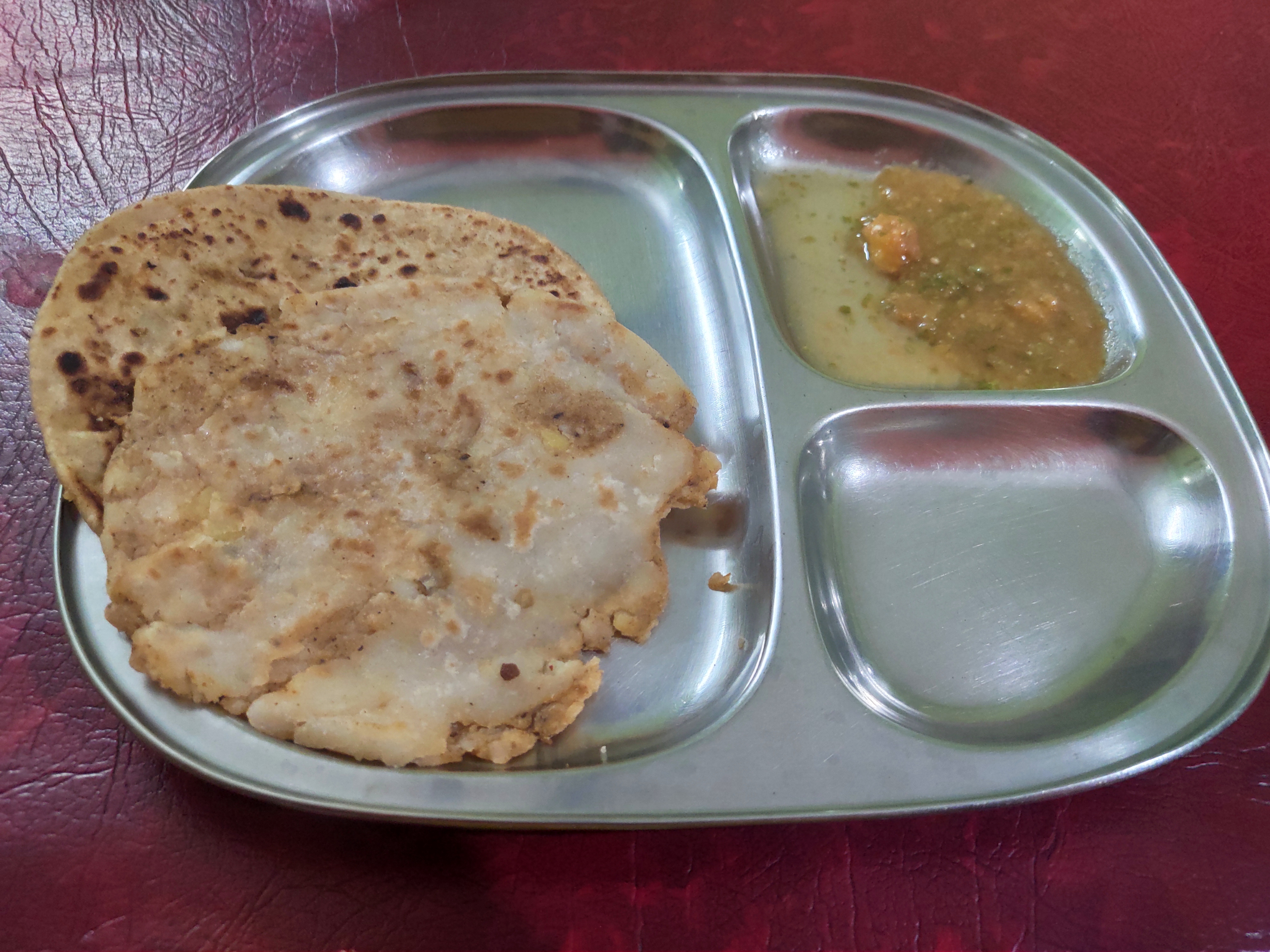 After worshiping Lord Hanuman, we came back house. After coming home, the Prasad that we had grazed for Maa Durga, we ate.