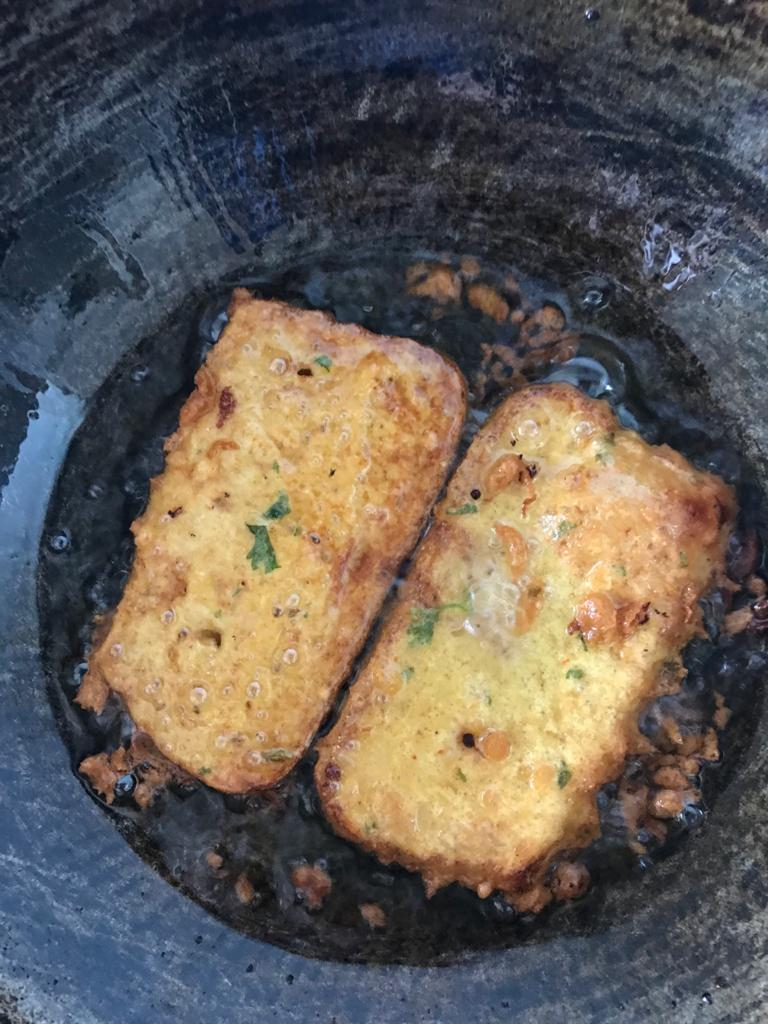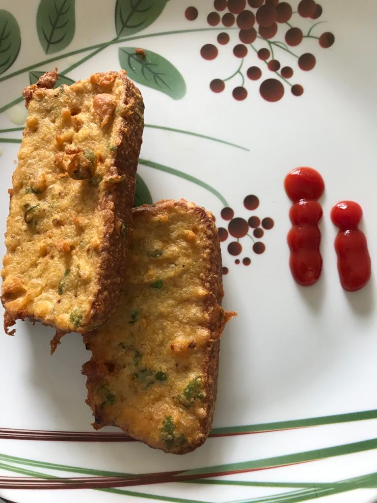 I had my breakfast at around 10:15 am. Bread pakoda, with tomato ketchup.