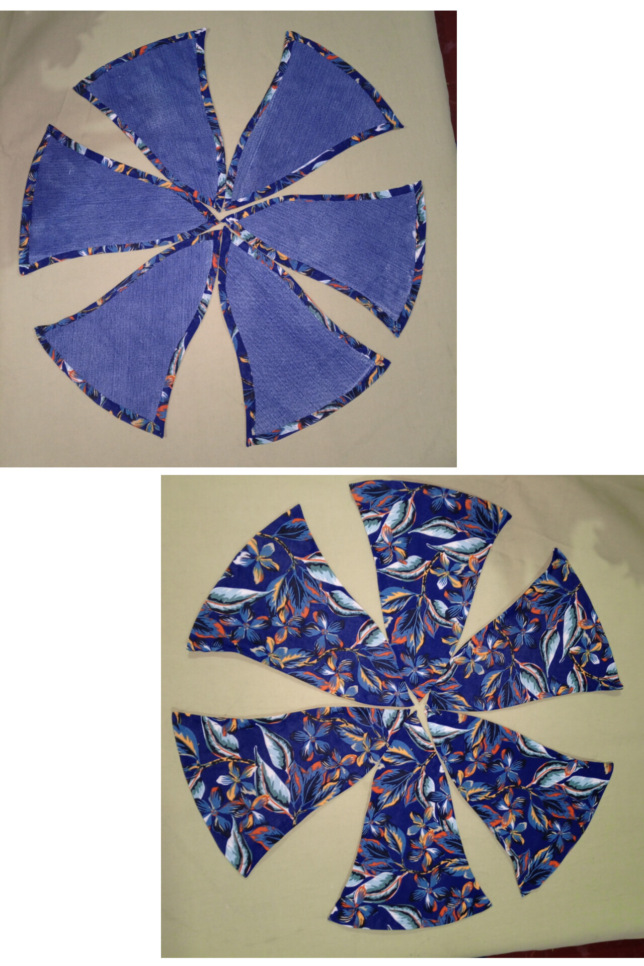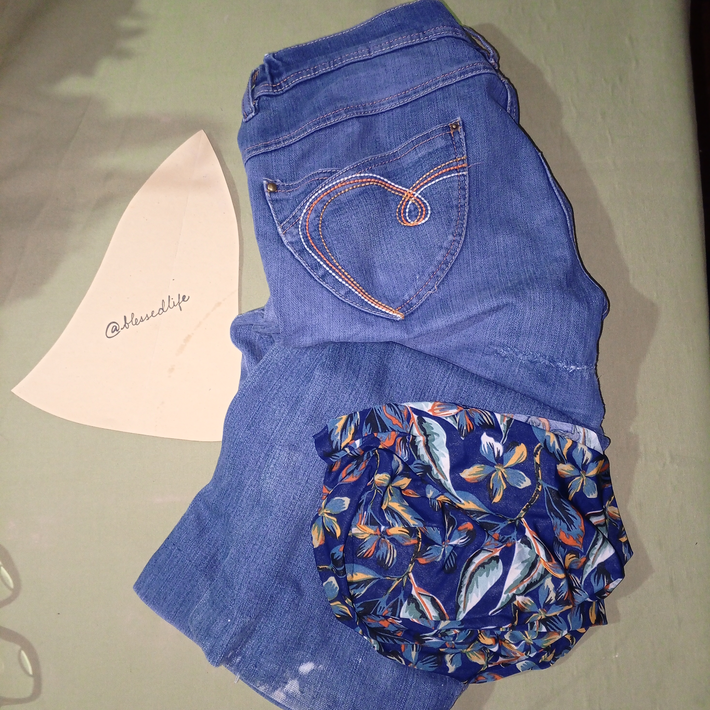 En primer lugar, marqué el patrón en la tela de jean, recortando seis piezas.