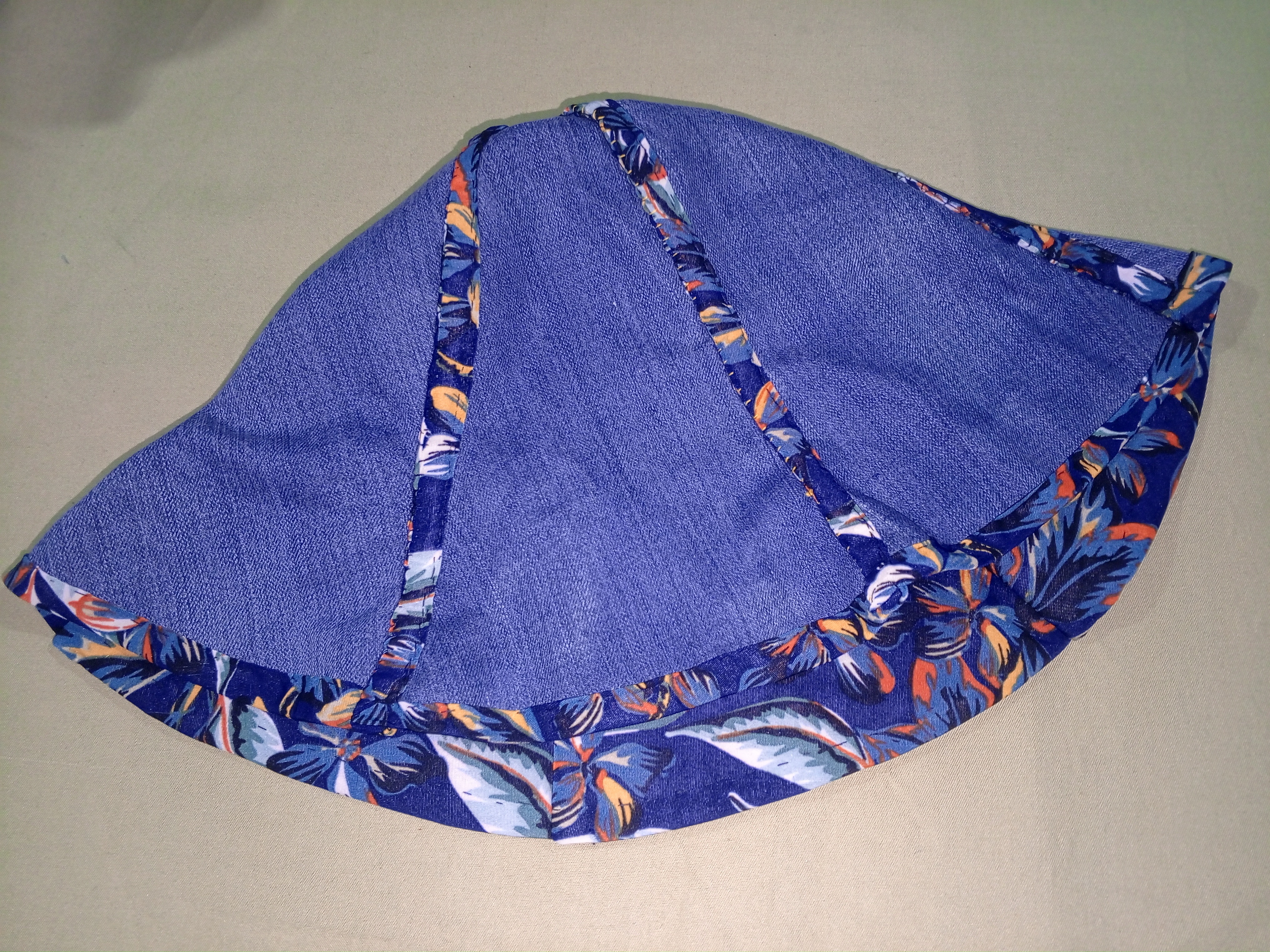 Por fin me decidí y lo tomé para este reto. Me parecía ideal utilizar tela de jean pues no tenía otras más rígidas para hacer el sombrero reversible que propuso mi profesora @lunasilver.