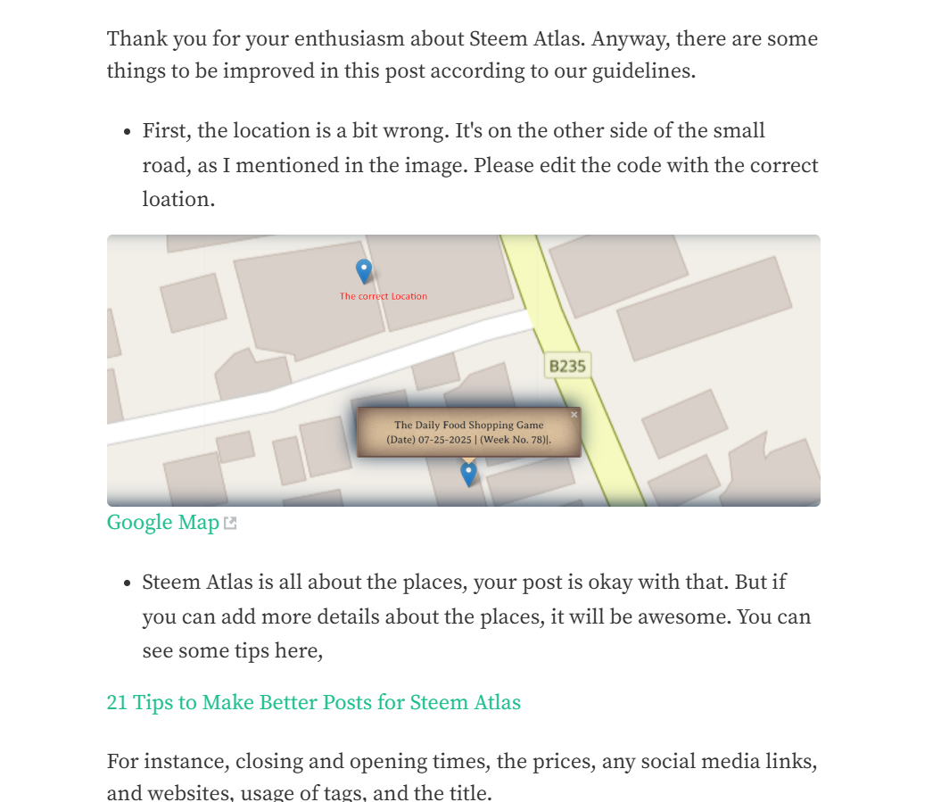 As we are ultimately targeting the outside audience, the accuracy of the details, location, and the standards of the posts are highly considered. So, I checked the pin location through several sources, and review the articles based on these 21 Tips.
