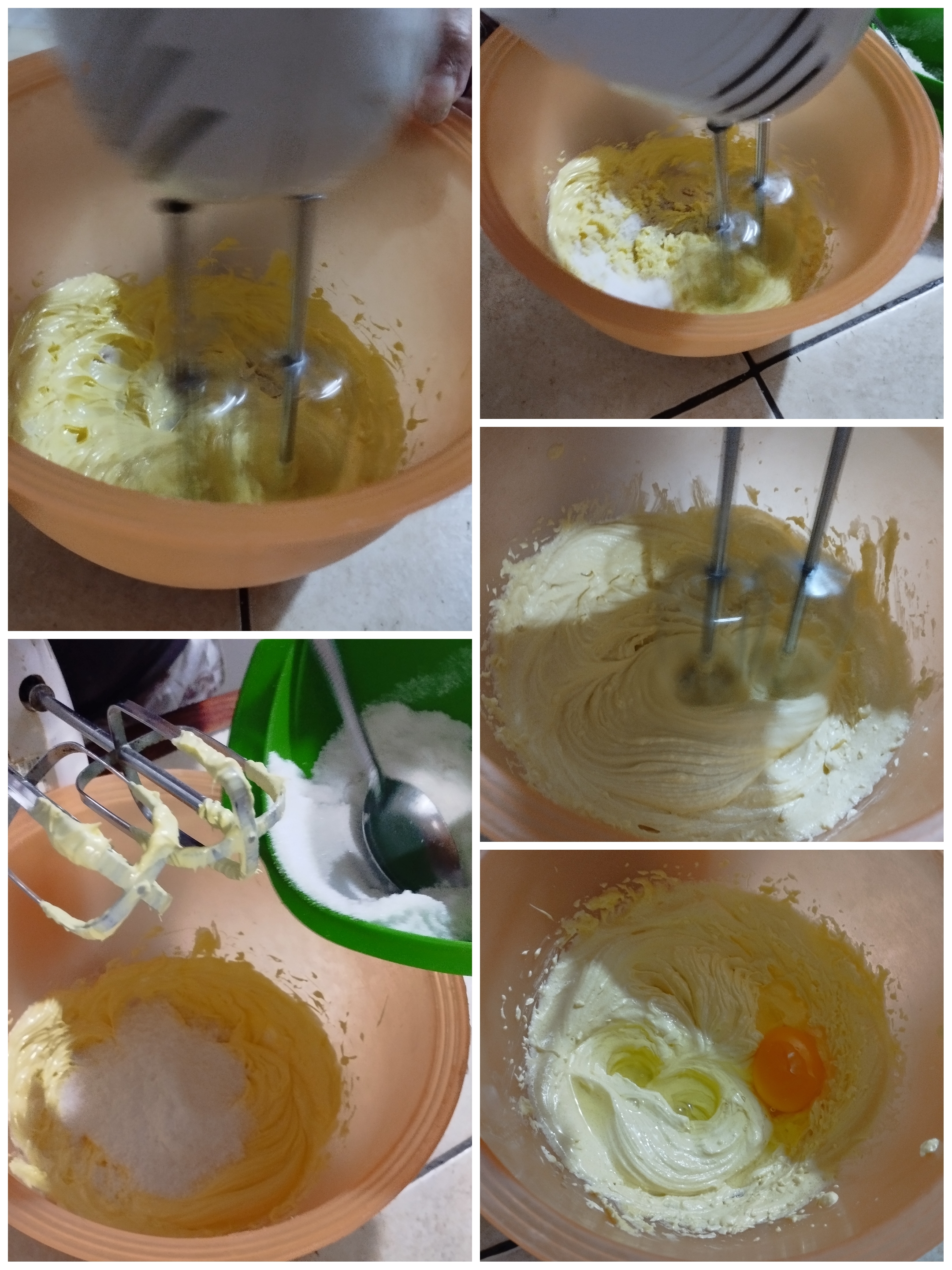 En un envase cremamos la mantequilla y poco a poco vamos agregando el azucar, este paso es muy importante y debemos batir por un buen rato, deben fundirse muy bien estos dos ingredientes. En mi caso para el paso 1 y 2 usé batidora de mano.