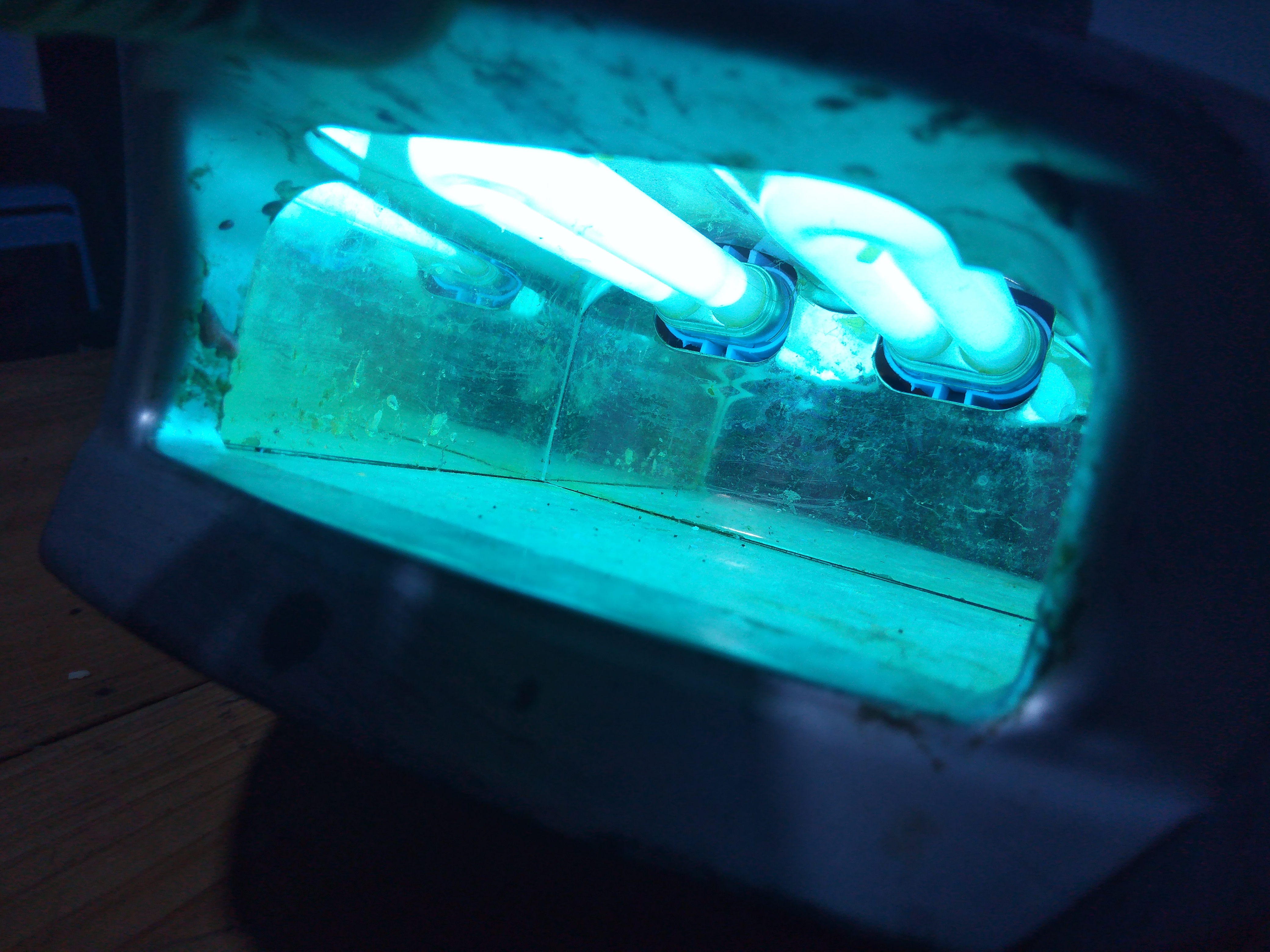 Al pasar el interruptor de encendido podemos ver los bombillos ultravioleta encendidos, ya la lámpara para uñas estaba lista y la clienta podría seguir trabajando su emprendimiento como antes.
