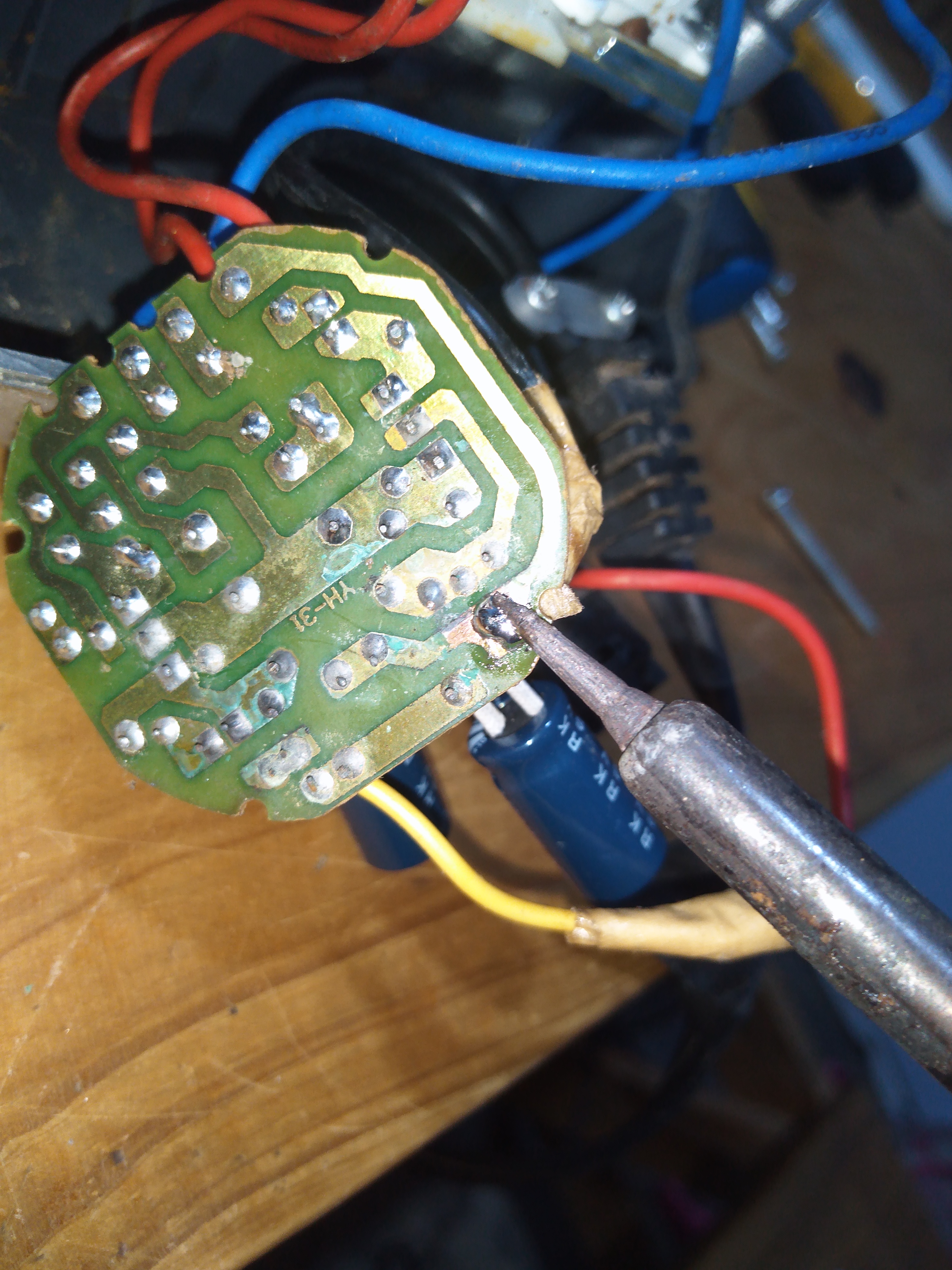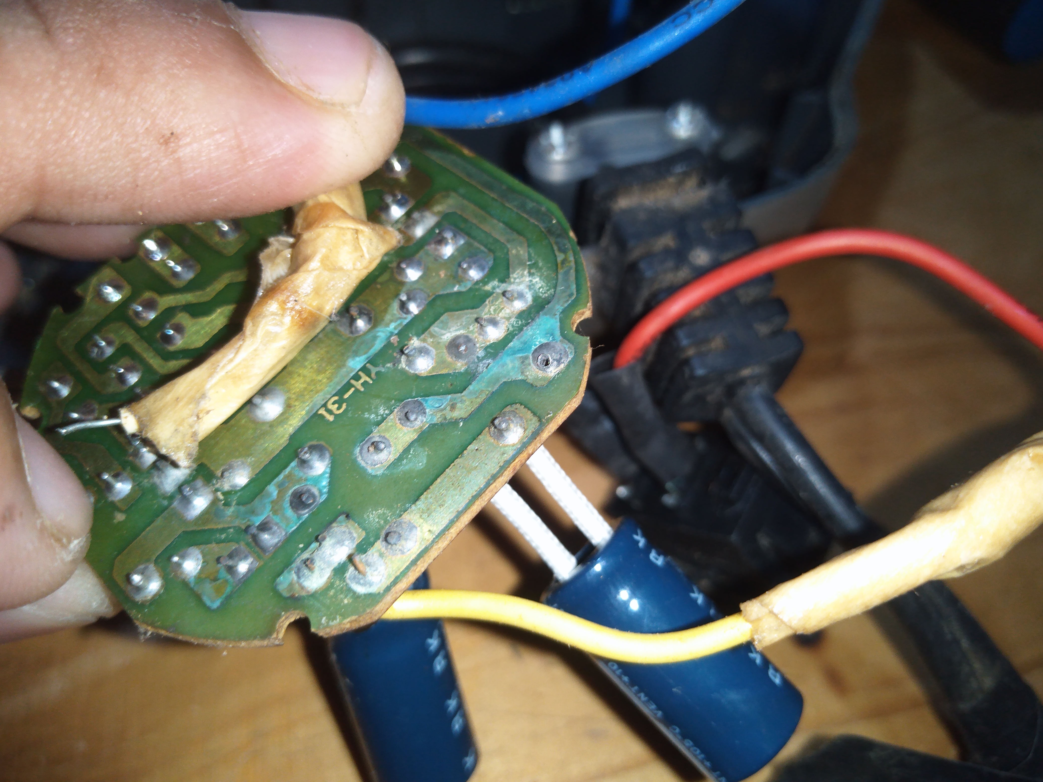 Está soldadura se daña porque se produce un calentamiento, ya que allí es donde llegan los 110v AC y por el cambio de temperaturas de caliente a frío, la soldadura de estaño se deteriora y el alambre se suelta.