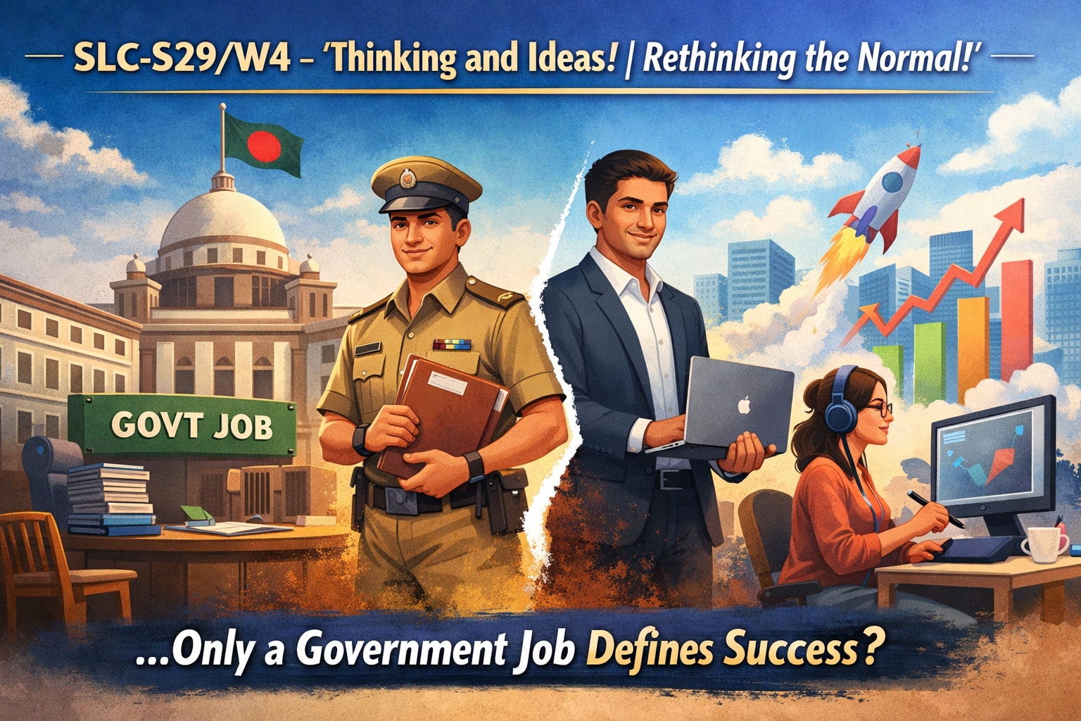 In my opinion, the belief that only a government job defines success is a major social belief that should be questioned. In Bangladesh, many people think business, freelancing, creative work, or entrepreneurship are uncertain, so a secure government job is the final goal of life.