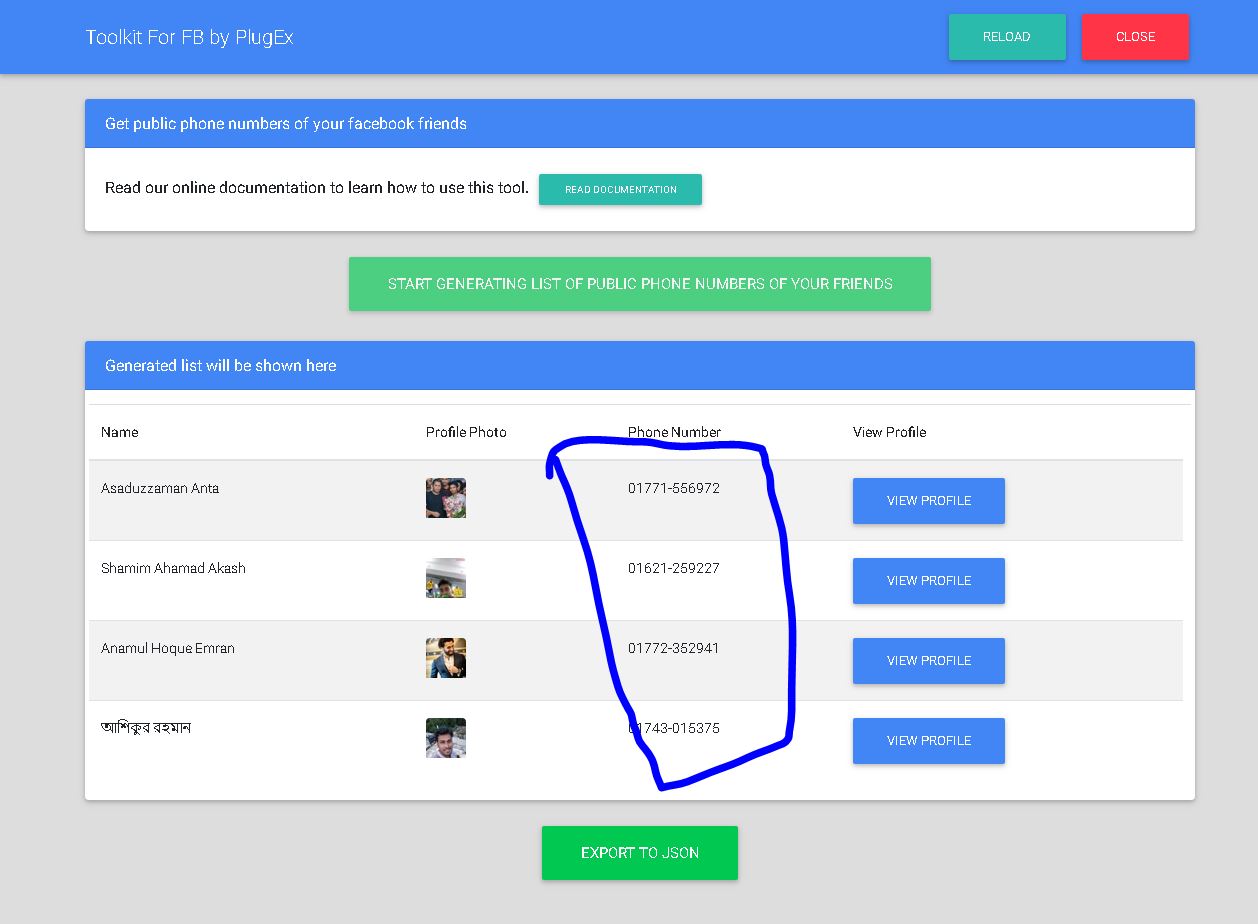 3. You'll be redirected to a new page. On that page, click- (Start Generating List of Public Phone Numbers of Your Friends)