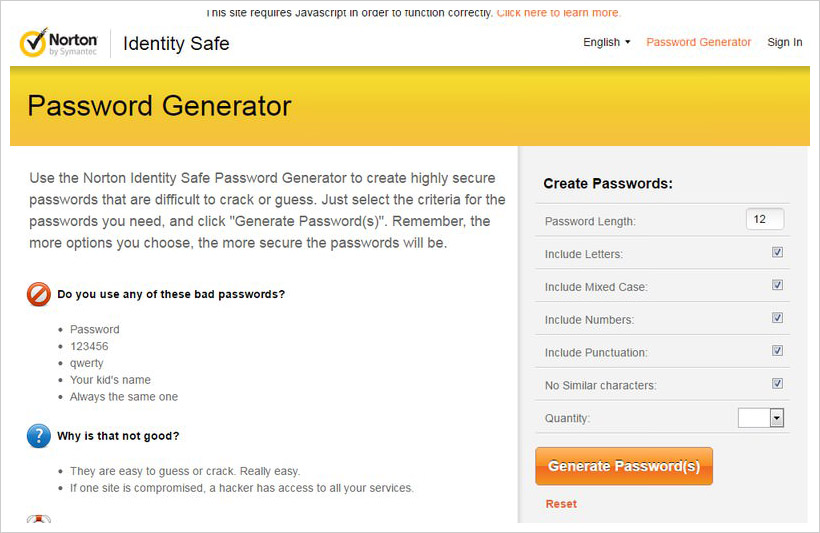 Norton Password Generator