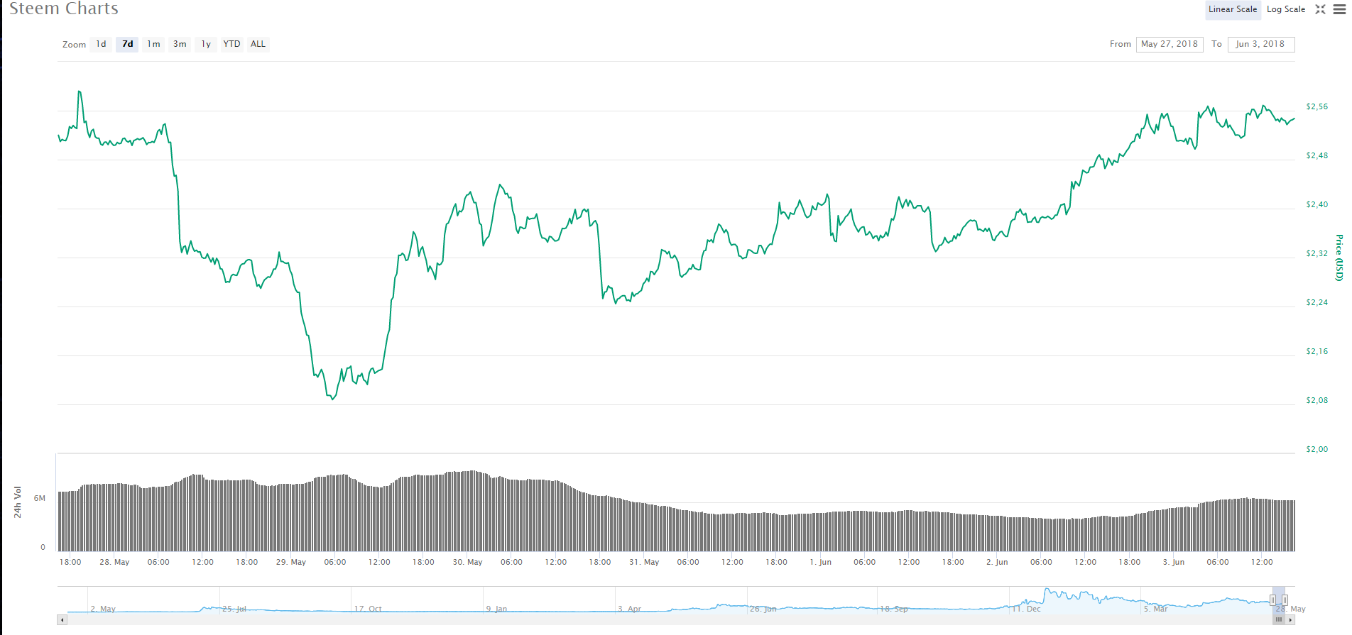 Steem'in 1 haftalık grafiği.