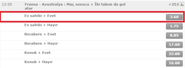 Kasamızın ilk bahisi Fransa - Avustralya maçı için olacak. Her ne kadar bahis dünyası tarafından Brezilya > Almanya > İspanya sonrası turnuvanın 4. favori takımı da olsa bence kadro kalitesi açısından uzak ara en iyisi Fransa ve otoritelere hoooooop diyecekler ve bu maçla birlikte biz burdayız diyeceklerdir. Fransa için rahat ve bol gollü bir galibiyet bekliyorum. Kalelerinde de 3-4 attıktan sonra 1 gol yemelerini bekliyorum. Muhtemel skor 3-1 ya da 4-1 olacaktır.