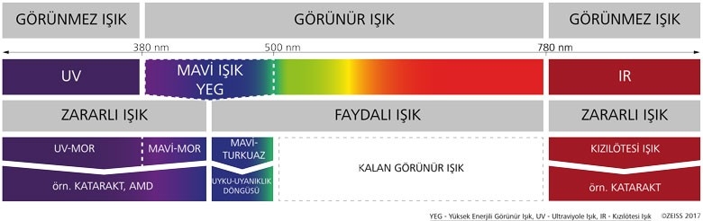 Tabi bu mavi ışık tümden zararlıdır manasında anlaşılmamalıdır. Mavi ışık vücudumuzda çok önemli görevler üstlenmektedir. Mesela; uyku uyanıklık dengemizin sağlanmasında, uyandığımızı vücudumuza haber veren, bizde uyku hormonu olarak bilinen melatonin’in salgılanmasını baskılayıp yerine Seratonin ya da Kortizol gibi hormonların salgılanmasını sağlayan bir habercidir. Kortizolün gündüz faydalarının yanı sıra kan şekerini artırarak obeziteye yatkınlık oluşturduğunu unutmamak gerekir.