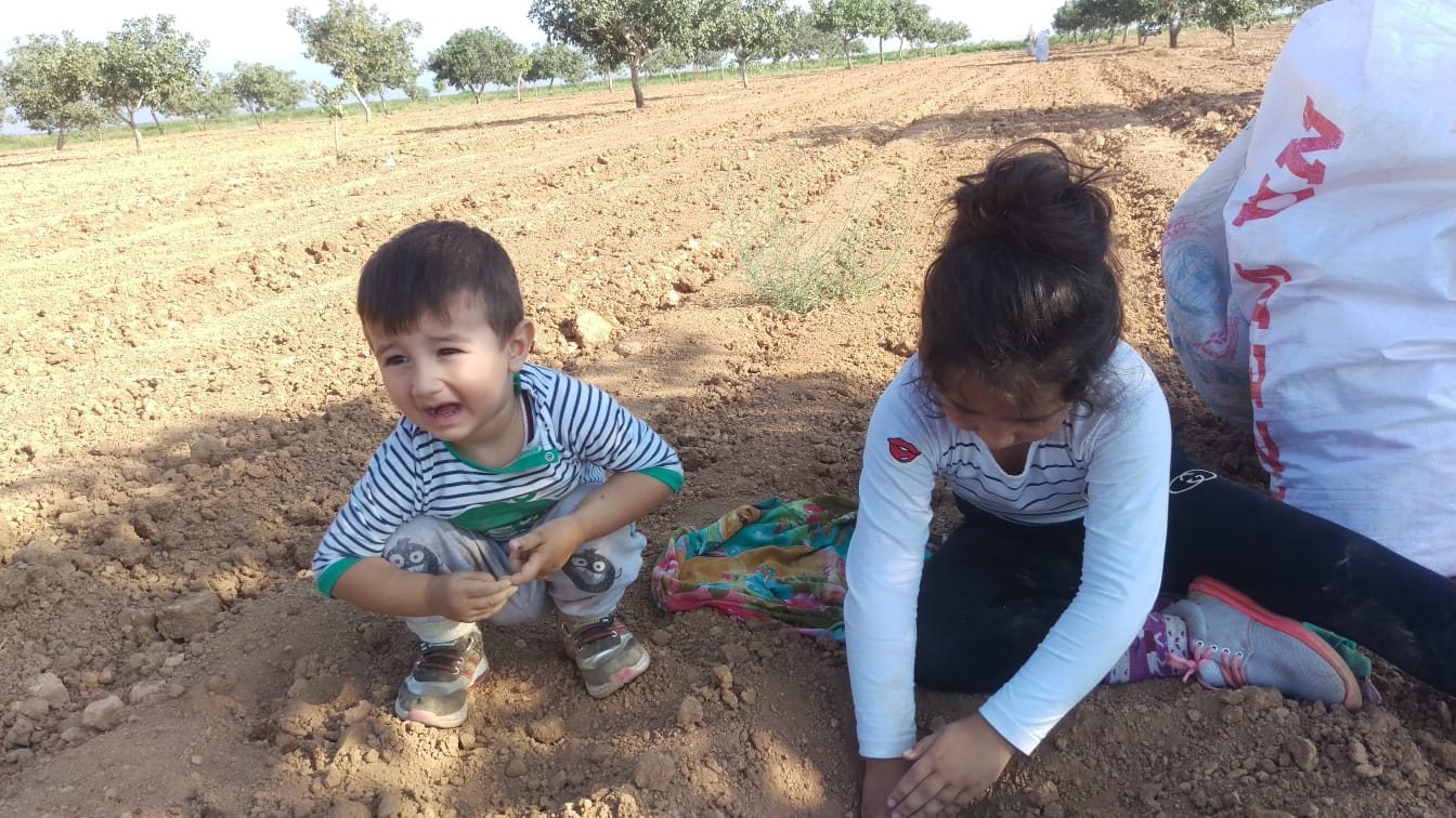 Burada ben ağaca çıkmışım bizimkilerde fıstık topluyorlar.