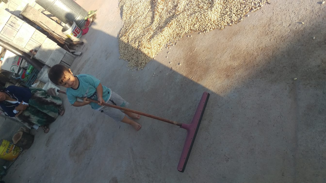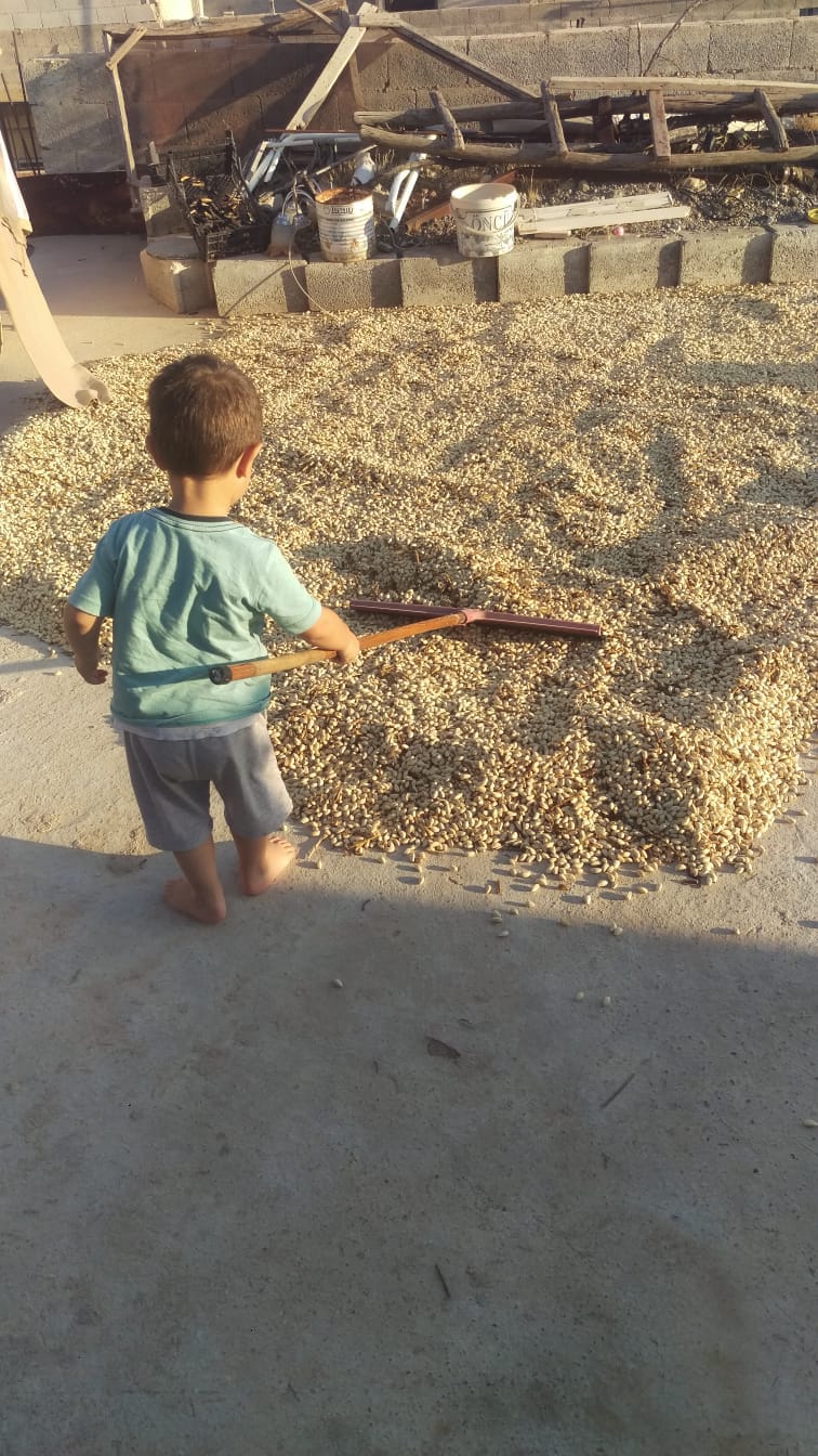 Burada da fıstıkları kuruttu artık dama serip kuruttuk. Artık fabrikaya götürebiliriz. Her zaman ki gibi kardeşim tüm resimlerde çıkıyor.