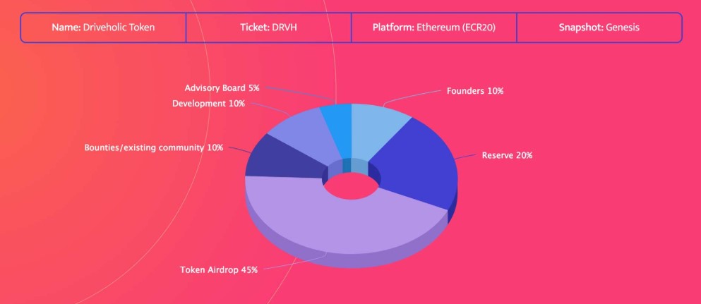 Driveholic, elindeki tokenleri airdrop ve bounty halinde dağıtacak. Elinde EOS bulunduran kullanıcılara toplamda 900 milyon adet token dağıtacak. Eğer airdropdan faydalanmak isterseniz elinizde 100 den fazla EOS bulundurmalısınız.