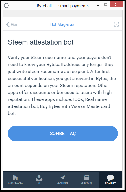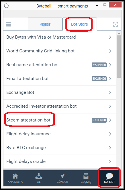 2.) Cüzdan programındaki Chat/Sohbet kısmından Bot Store'u açın.