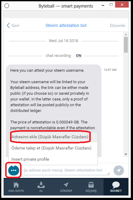 4.) Adresinizi ... kısmından sohbet kısmına gönderin.
