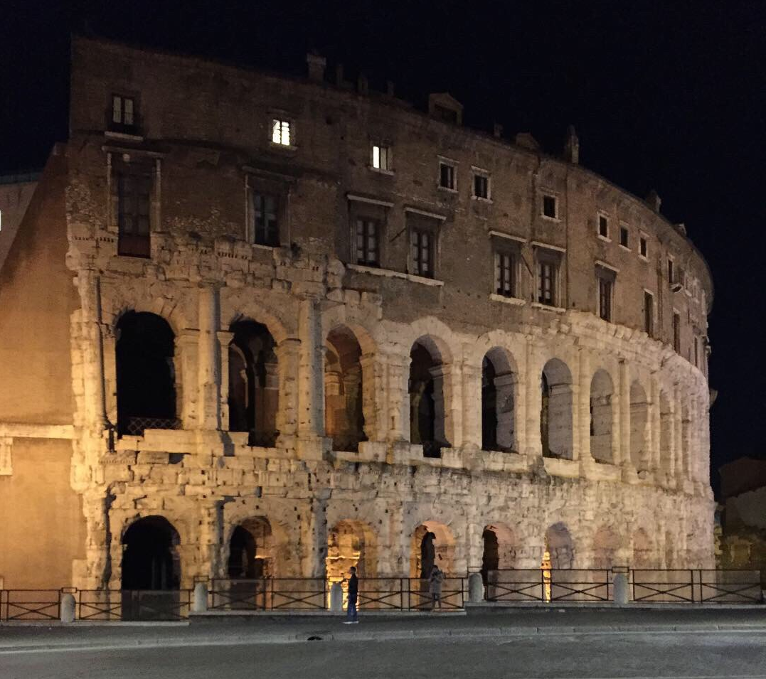 Ve gelelim yavaştan gezme kısımlarına. Akşam üzeri otelden arabayla yaklaşık yarım saatlik bir mesafeyle Marcellus Tiyatrosu'nun karşında indik. Burada kulağımızın tekine kulaklık takacak şekilde İtalyan bir rehber eşliğinde turumuza başladık. Açıkçası ben dikkatimi dinlediklerime değil gördüklerime vererek "nasıl olsa gördüğüm yerlerin tarihini sonradan Türkçe olarak okurum" diyerek keyfime baktım. Oradan yürüyerek önce Capitoline Tepesi'ne ve Roma Forumu'na sonra da Roma'da "her yolun çıktığı yer" olan şehir merkezi Venedik Meydanı'na(Piazza Venezia) geçtik. Sokaklar loş ışıklı olsa da elimden geldiğince fotolar çektim. Görebildiğim yerler şunlar oldu: