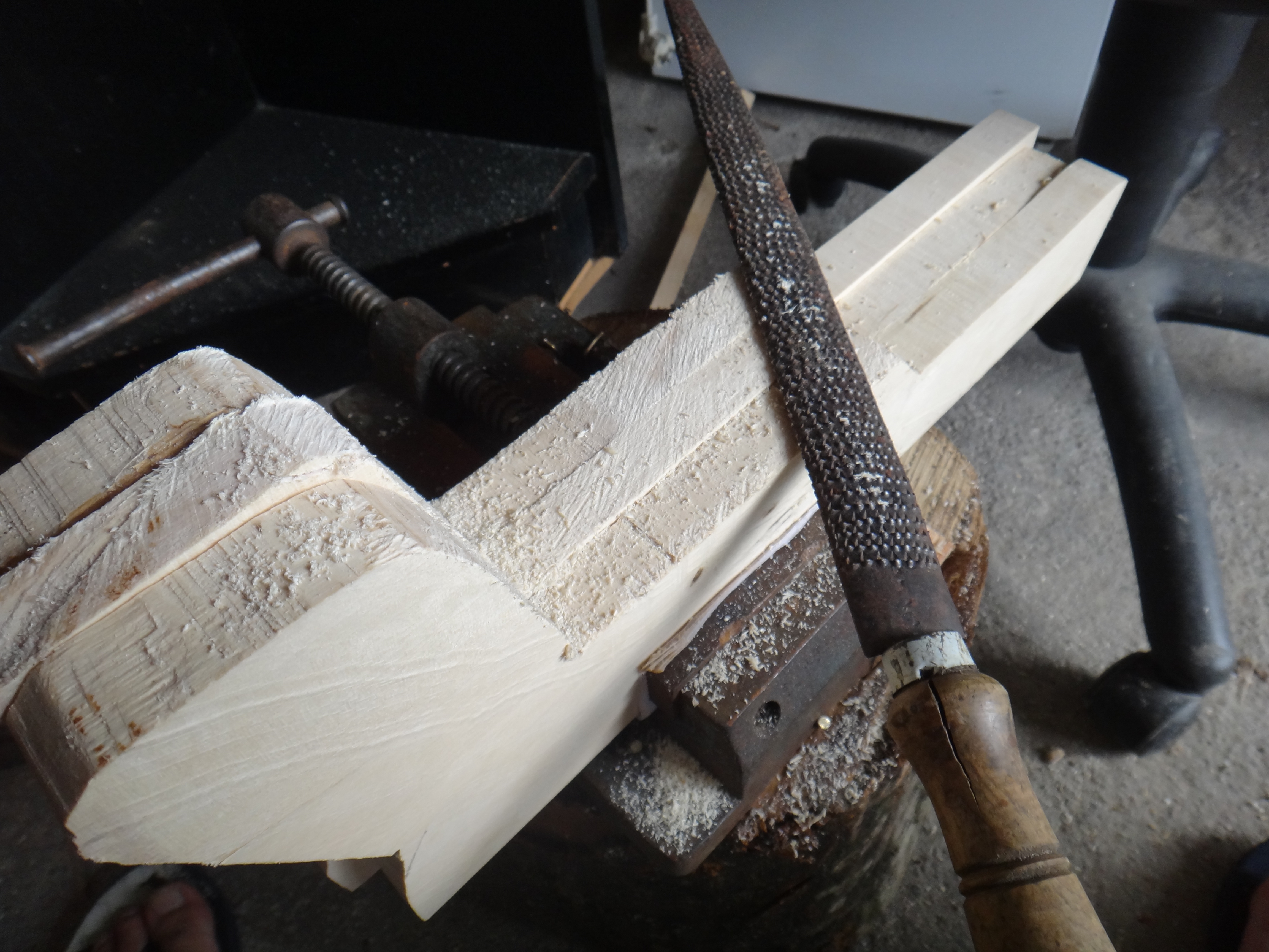 These are the main tools i used. The big log is going to be the wood i will be using to make the crossbow. I went a local woodworking shop and asked the owner to split the wood into 6 long pieces. This log is given to me by an old man from our neighborhood. Other tools were belong to my grandfather. He passed away in 2007. I didn't use any power tool , because i wanted to feel how people would have done it in medieval times.