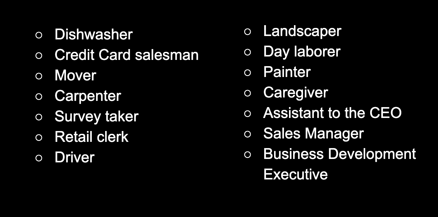 Day Laborer - is easy to highlight as maybe the most awful job. They send you to clear up worksites, or vacuum concrete dust for 8 hours and then when you come back they take half your pay, and spit the rest out of a change machine. But since you have no accountability or skills, they feel they can treat you this way.