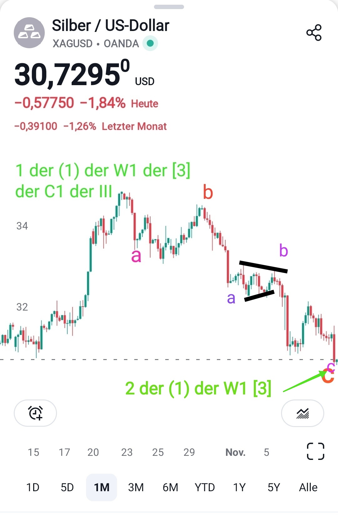 Beim Silber bildet sich ein interessantes Wellenmuster aus, dass noch einmal die Chance für einen Hedge gegen den Kollaps des Finanzsystems bietet.