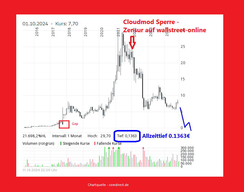 Solange er CloudMOD dort sein Unwesen treibt ist die Pleite des Smartbrokers und der Totalverlust der Aktionäre nur noch eine Frage der Zeit.